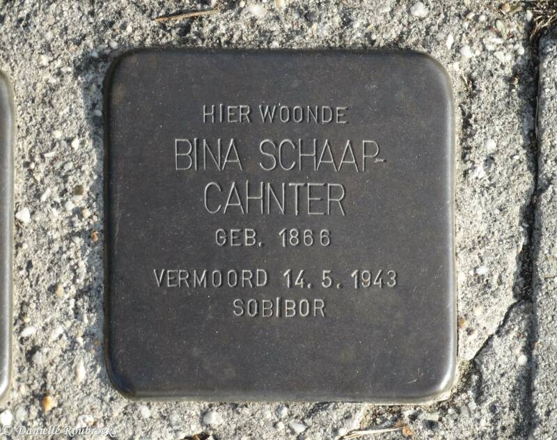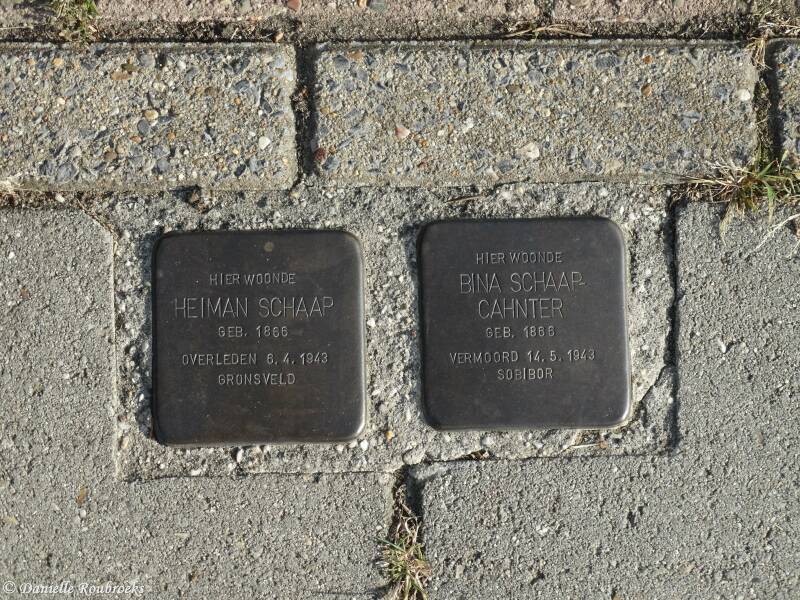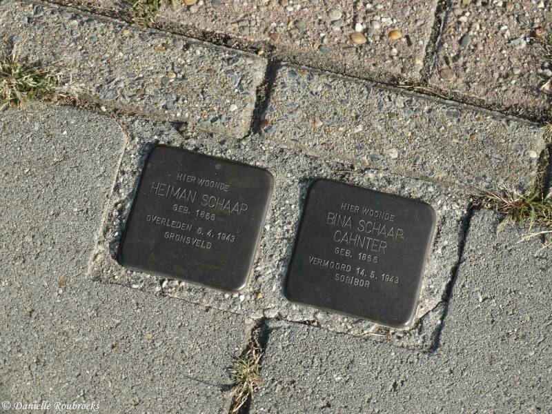 The Schaap family, consisting of 4 people, had to report to Vught. However, the old Heiman Schaap died in his own bed in Gronsveld. The son Alexander and his wife reported the death to the municipality and went into hiding immediately afterwards. Bina Schaap-Canther was an elderly woman suffering from dementia, she was arrested and taken to Sobibor and murdered there.