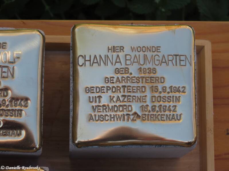 Amongst those arrested that night was also Anna’s husband Nico Workum. All five family members were brought to Kazerne Dossin, here they were registered as person 106 (Nico), 454 (Elias Chaim), 455 (Chaja Riwka), 456 (Anna) and 457 (Siegfried) on the deportation list of transport XXII B (Belgians). This train left Mechelen September 20, 1943 and arrived in Auschwitz-Birkenau September 22, 1943.