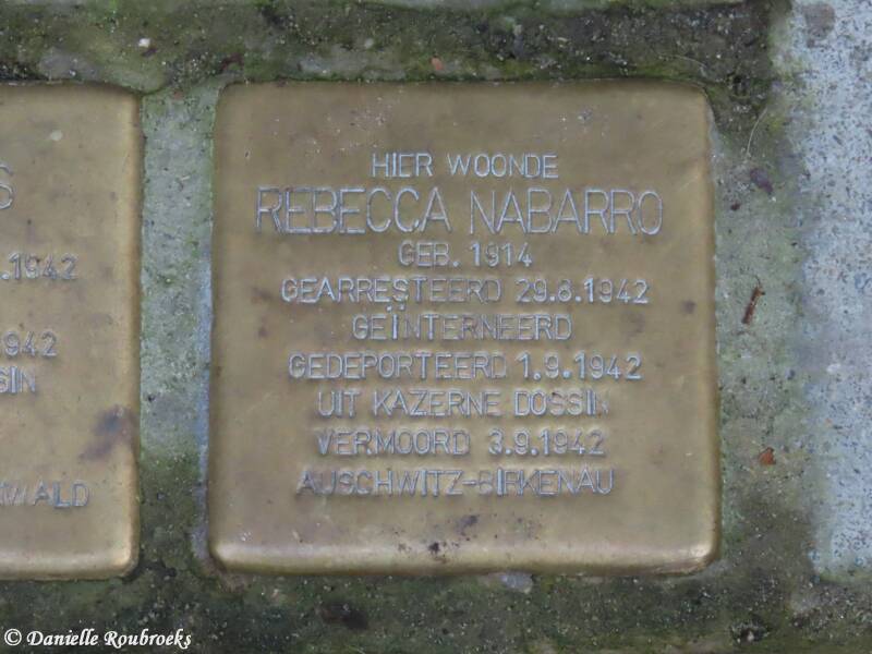 Rebecca Nabarro was born on 14 February 1914 in Amsterdam, married to Emilius Vos and she was a housewife. Arrested during the razzia in Antwerp. Put on the list at Kazerne Dossin 29 August 1942 leaving Mechelen 1 September 1942 on Transport VII, transportnumber 923.