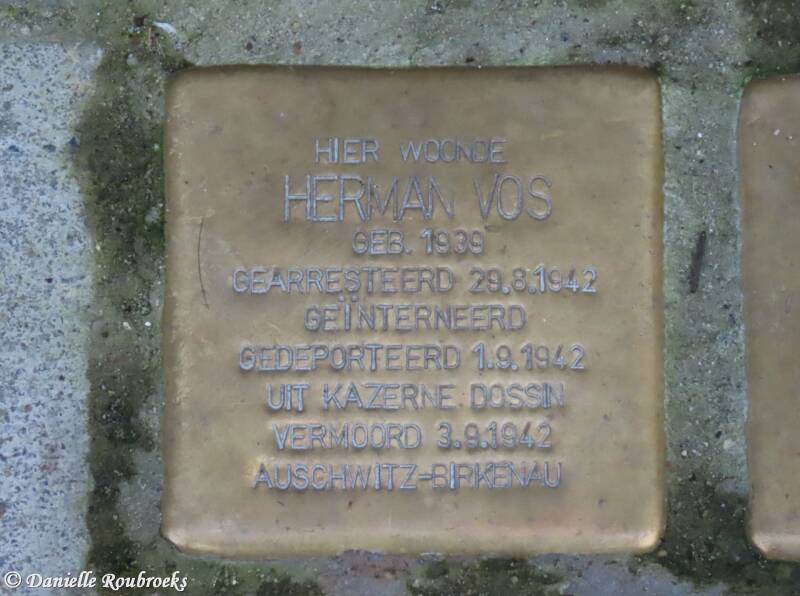 Herman Vos was born on 19 July 1939 in Berchem. Arrested during the razzia in Antwerp. Put on the list at Kazerne Dossin 29 August 1942 leaving Mechelen 1 September 1942 on Transport VII, transportnumber 924.