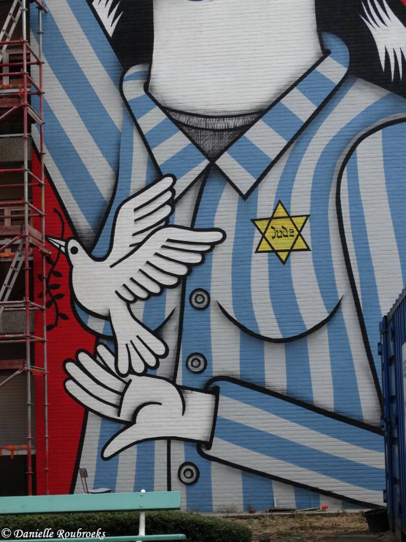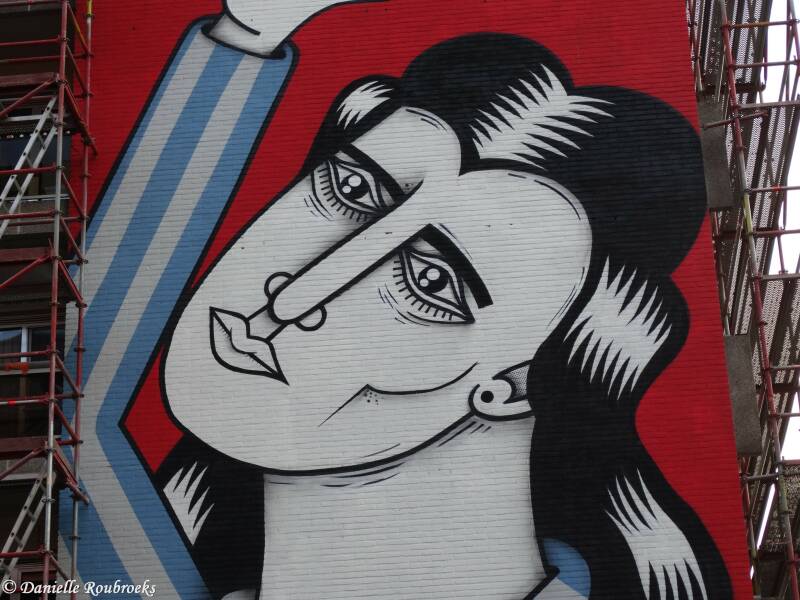 Street artist Joachim Lambrechts painted her mural in the Montensstraat, Borgerhout.