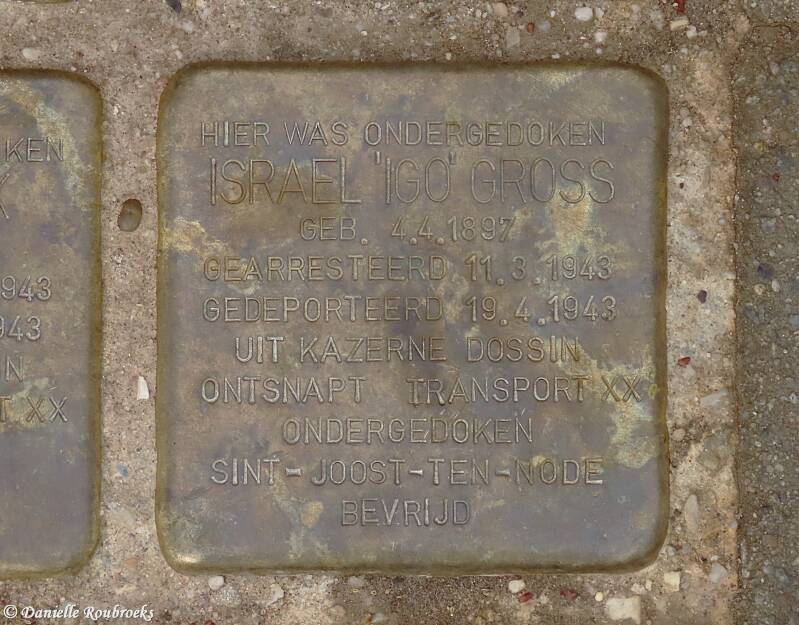 Thanks in part to an action by three young resistance fighters, who brought the train to a halt between Boortmeerbeek and Haacht, 236 deportees were able to escape from the train along the entire route. 118 of them remained out of the hands of the Germans, including Israel Gross, who escaped near Tienen. He joined his wife, who was in hiding in Sint-Joost-ten-Node. Together, they survived the war. In 1949, the Gross-Berlstein couple emigrated to the US (New York).