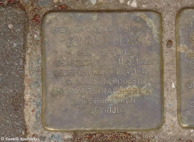 In July 1942, he returned to Belgium and went into hiding there. His parents had already been deported in the meantime. In October/November 1942, Jonas Polak went into hiding with Charles and Yvonne Hendrickx-Noë, who provided shelter to three other Jewish refugees at Lentelei 35 in Edegem. On March 11, 1943, the people in hiding were arrested. Along with the other arrested individuals, Jonas Polak was transferred to the Kazerne Dossin in Mechelen and placed on Transport XX bound for Auschwitz on April 19, 1943. Partly due to an action by three young resistance fighters, who brought the train to a halt between Boortmeerbeek and Haacht, 236 deportees were able to escape from the train along the entire route. 118 of them remained out of the hands of the Germans, including Jonas Polak, who escaped near Tienen. He went into hiding again and survived the war.