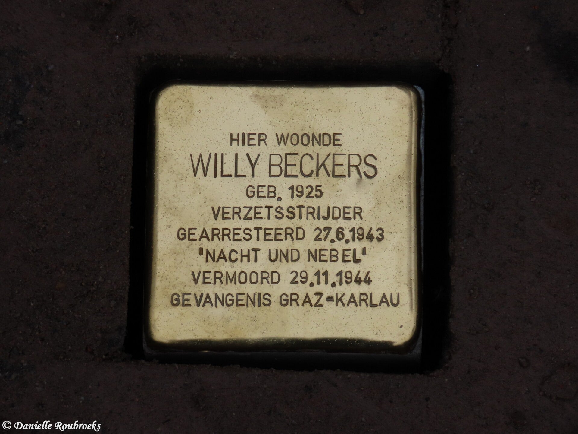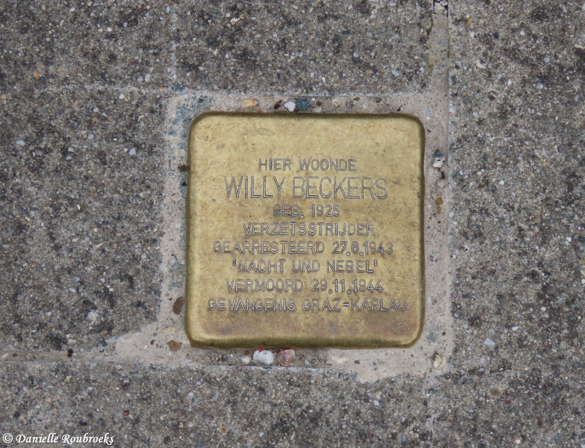 Willy Victor Marie Valentin Beckers, born on November 27, 1925, in Tienen, son of Carolus Beckers and Julia Stappers. He had two older sisters and an older brother. On June 6, 1929, the family moved to De Burletlaan 24 in Edegem. Willy was a student at the Sint-Jan Berchmans College when he became a member of the NKB in February 1942, for which he distributed clandestine pamphlets, among other things. In September 1942, he joined the Secret Army, where he primarily gathered intelligence.