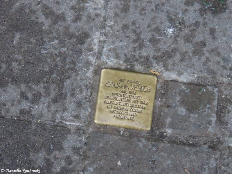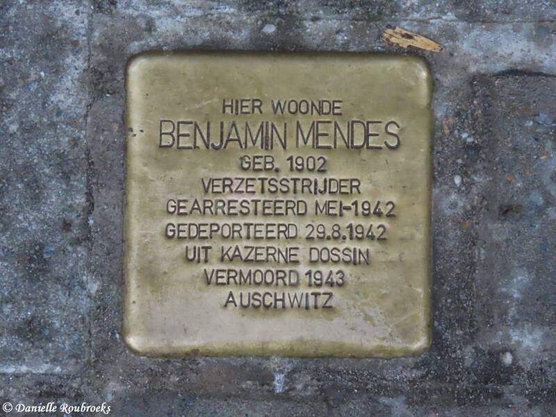 Benjamin Mendes was of Jewish descent. He was a traveling salesman and was caught at Antwerp Central Station with the White Brigade's clandestine press in his suitcase. Neither of them returned from the concentration camp.