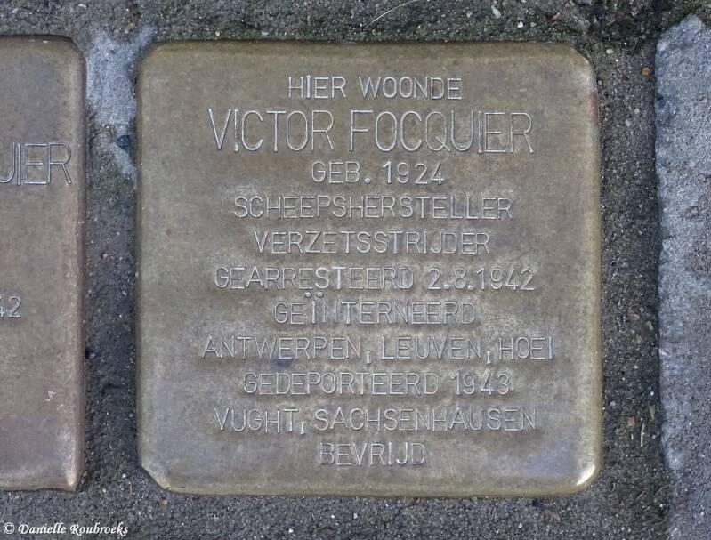Franciscus Focquier was born on February 23, 1899 and arrested at work on July 13, 1942 by the Gestapo. Carried away to Breendonk, Mauthausen and Gusen. There he died on January 12, 1943 of exhaustion. Workmate of Mercantille.