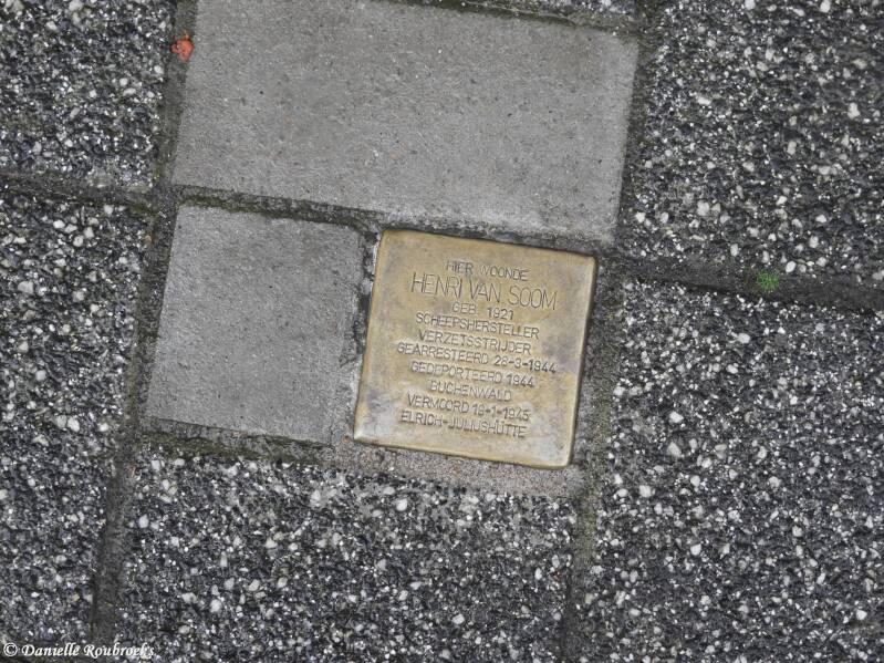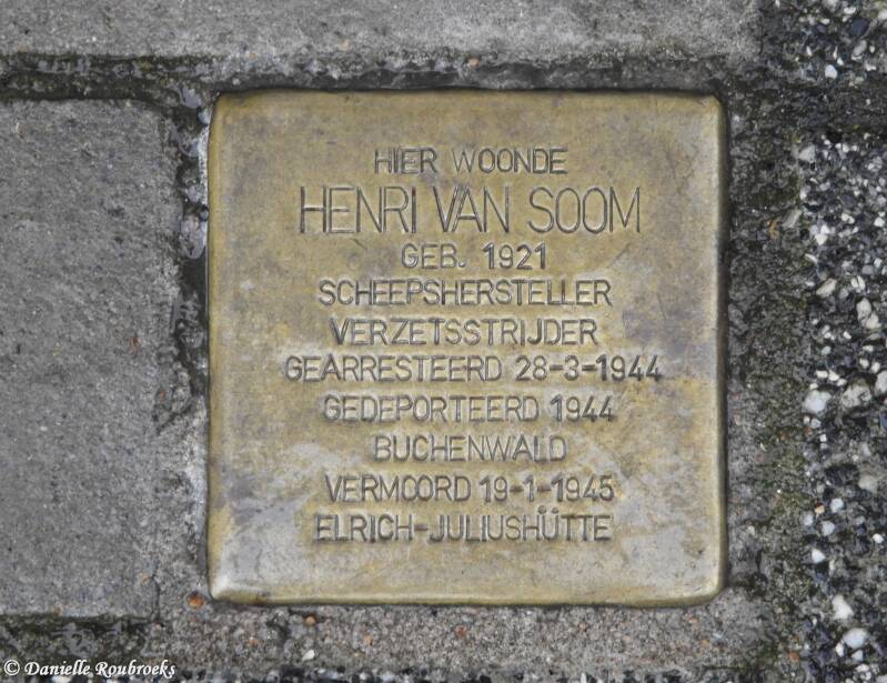 Henri Van Soom was born on October 30, 1921 and arrested by the Gestapo in the night of March 27 to 28, 1944. Carried away to Langerhausen, Prolenz and Sacksen. There he died on January 19, 1945 of exhaustion. Workmate of Mercantille.