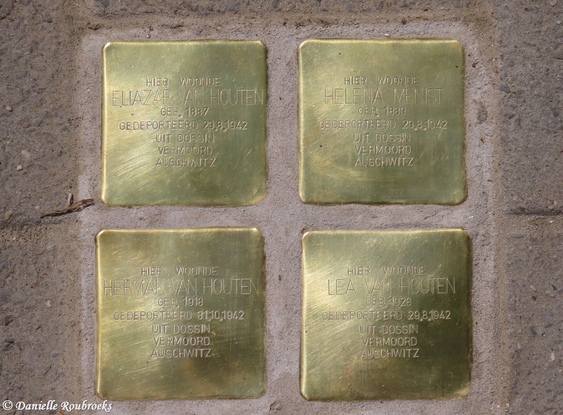 At house number 49 lie the stumbling blocks of the Jewish Van Houtven-Menist family. Eliasar, Helena, and their son Herman came to live in Mortsel from the Netherlands in 1919, where their daughter Lea was born in 1924.