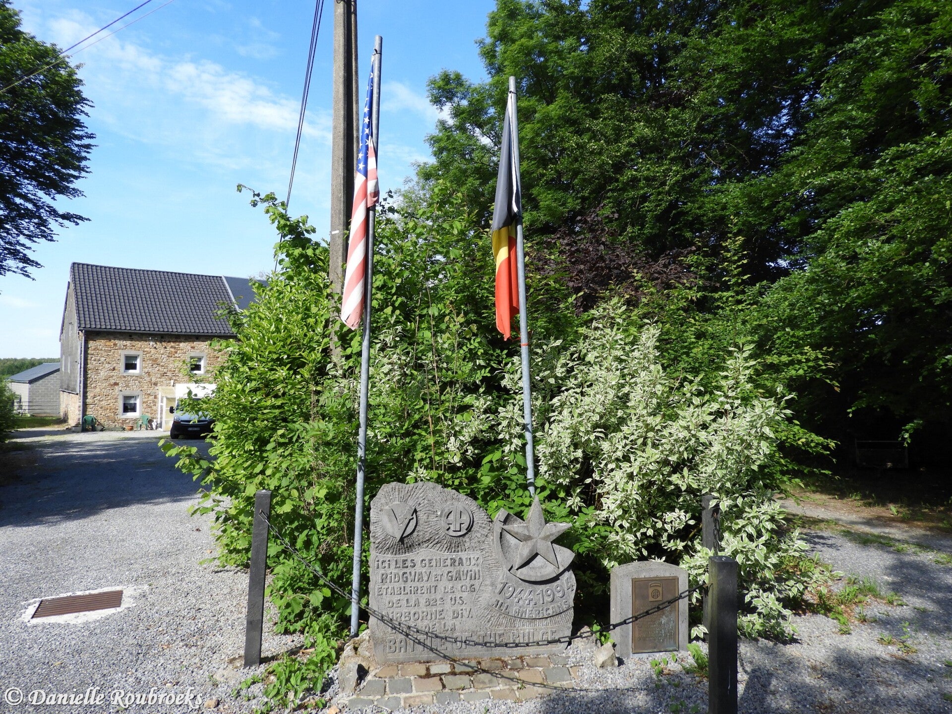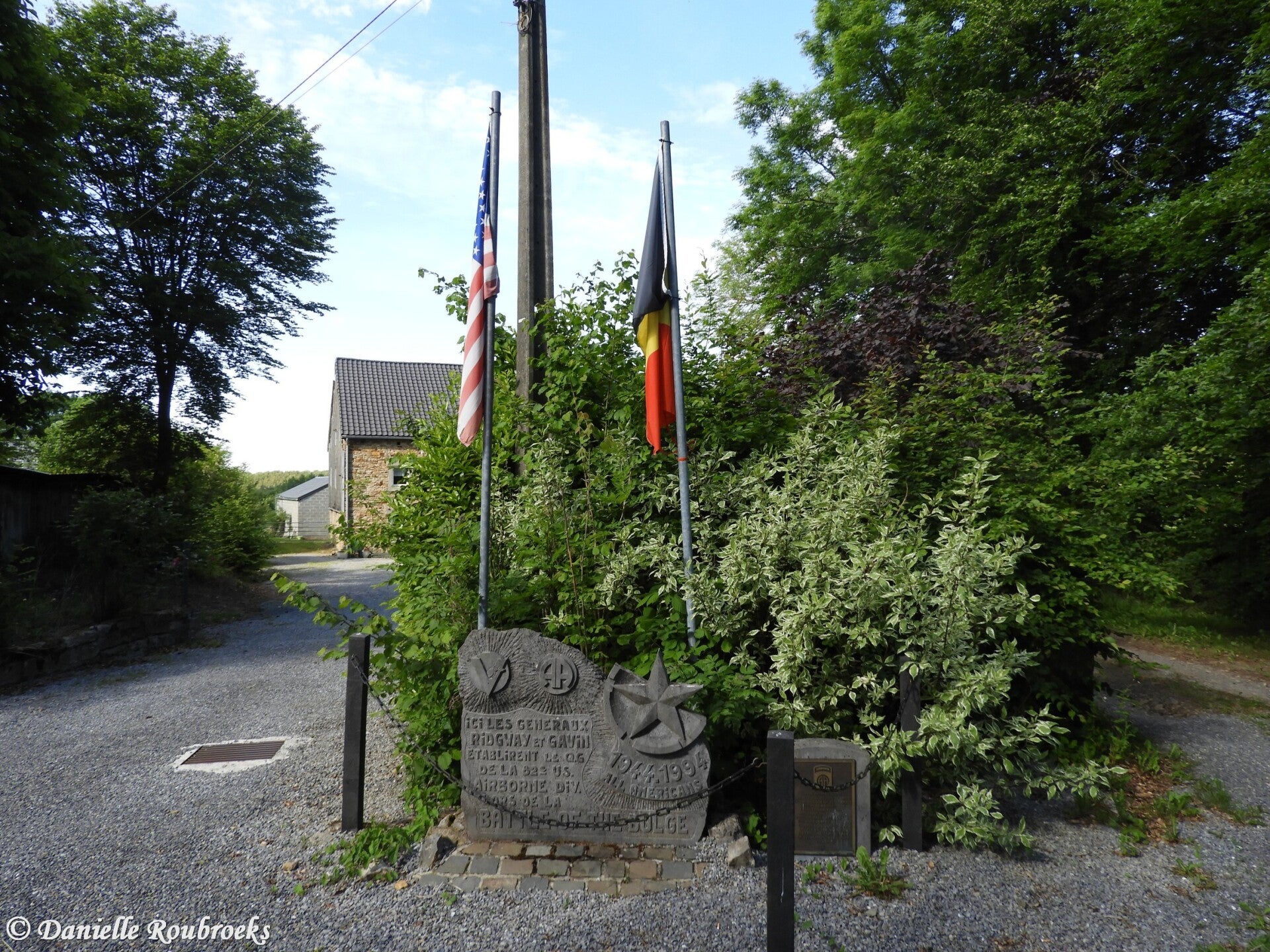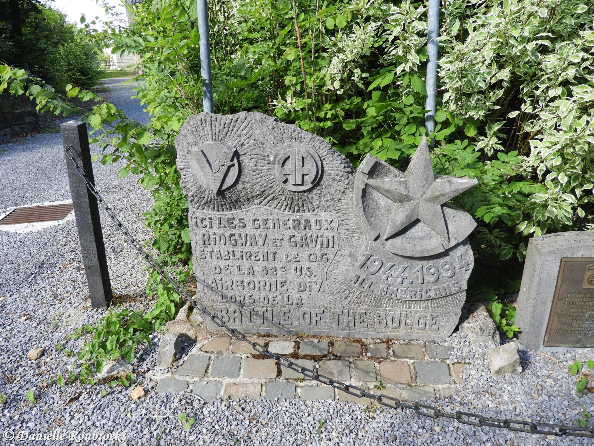 Memorial on the site where Generals RIDGWAY and GAVIN established the headquarters of the 82nd US Airborne Division during the Battle of the Bulge.