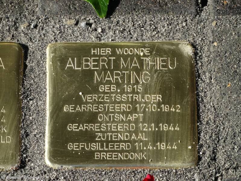 The café owner Joseph Gustaaf Stoilants, born in Geetbets on November 25, 1876 and married to Adolphine Verdcourt, veteran 14-18, was arrested on April 3, 1944 and imprisoned in the Buchenwald concentration camp. He was able to return after the liberation, but due to the hardships in Buchenwald he died in As on December 10, 1947.