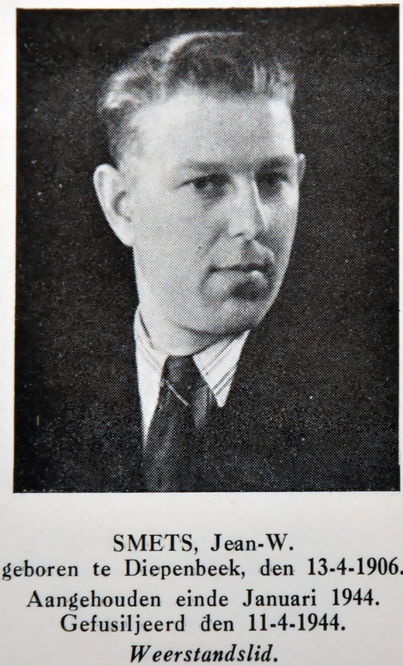 During this raid on January 17, 1944 in Neeroeteren, miner and partisan Jan Smets was also arrested. He was born in 1906 and lives in Diepenbeek. He has three children. He is listed by the Kriegsgericht as a “professional criminal” and convicted for his participation in seven murders, several robberies, sabotage actions, indecent assaults, assault and battery... He has, among other things, liquidated VNV constable Loos from Zonhoven. The comment on this from Sipo-SD chief Schiesser was telling: “Now we have lost our best agent introducer in the province.” Smets was also involved in the 'Broken Wings', which provides assistance to downed Allied airmen.