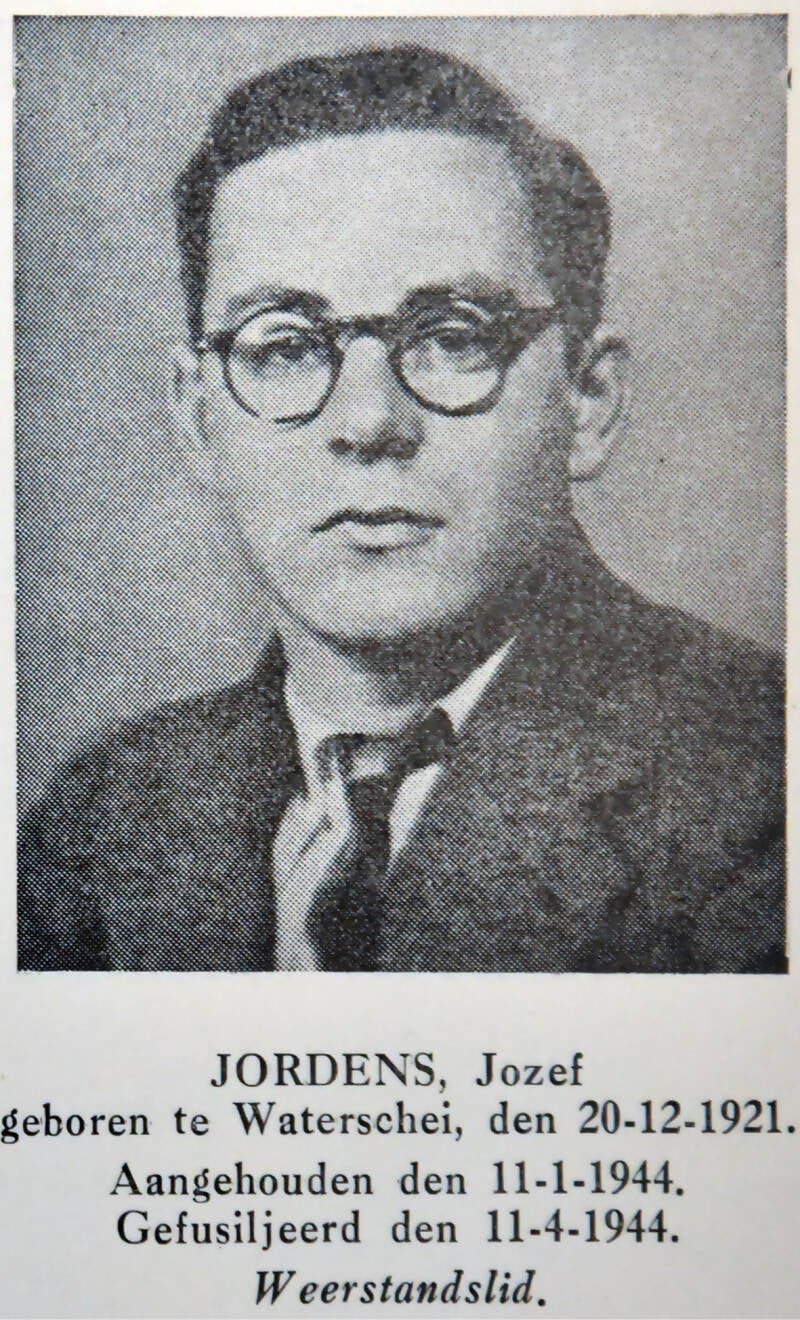Jozef Jordens, born in 1921, joined the partisan army. He is an employee at the mine and with his glasses he does not look like the average Limburg partisan. He was arrested on the night of January 10 to 11, 1944 and accused of the liquidation of the owners of Café Scherpenheuvel in Waterschei. The Kriegsgericht also convicted Jozef for “an act of violence against a German Wehrmacht army group.” He is said to have shot dead a German soldier. Joseph's execution is therefore not carried out with the bullet, but with the noose. This method of execution is considered particularly dishonorable by soldiers. He is the last convict to be hanged in occupied Belgium because on May 6, 1944, the occupying forces evacuate the Breendonk camp.