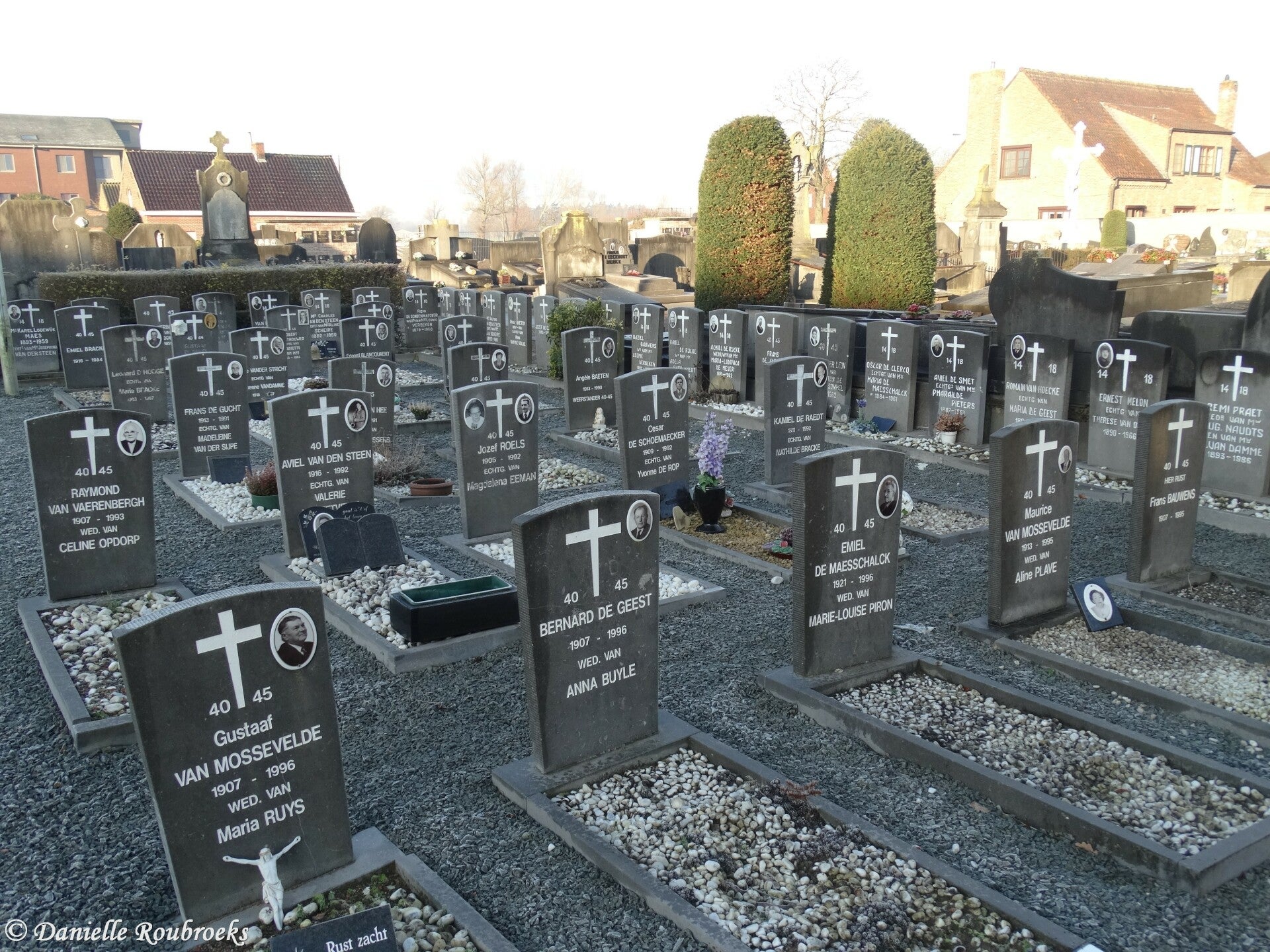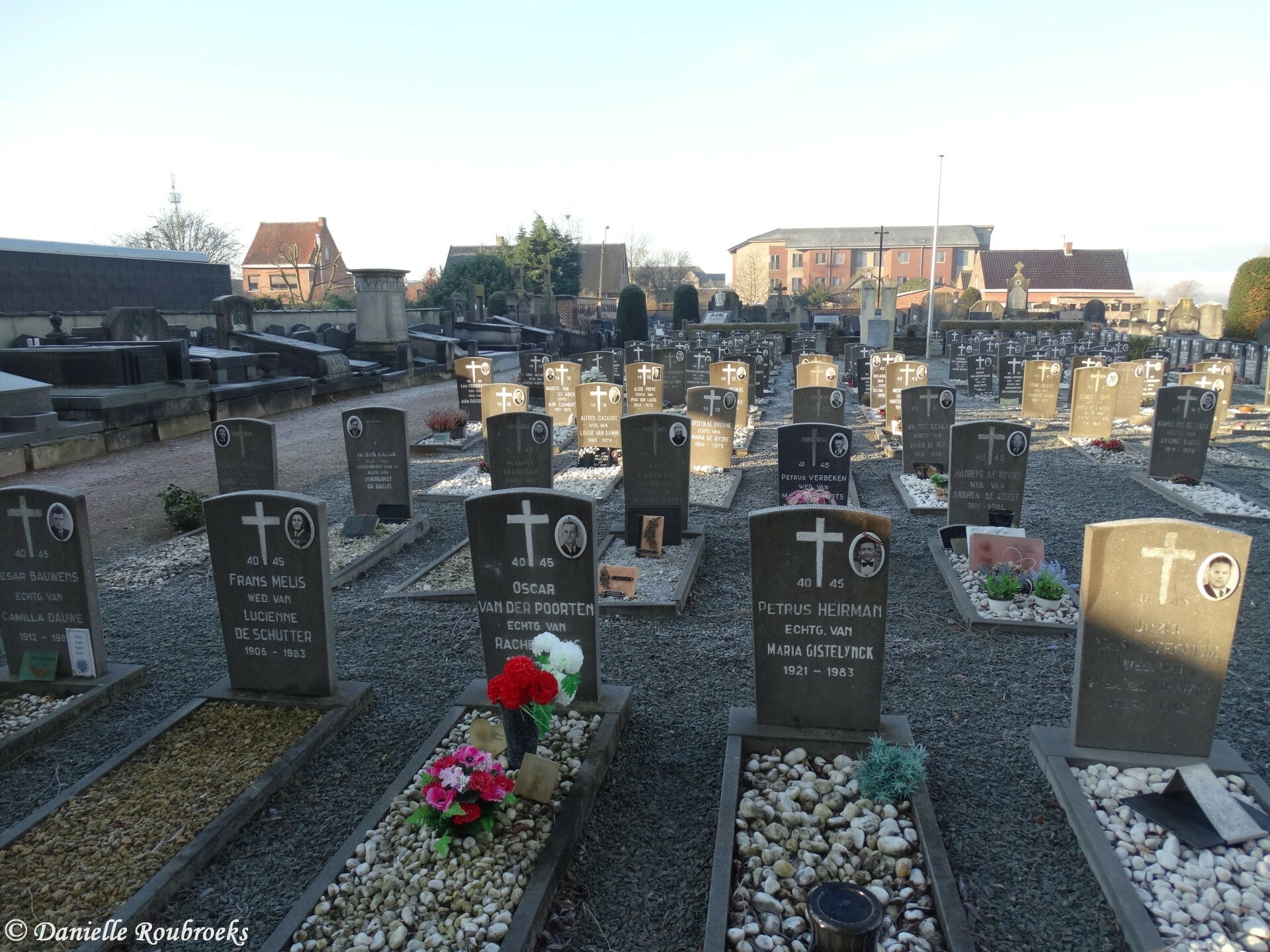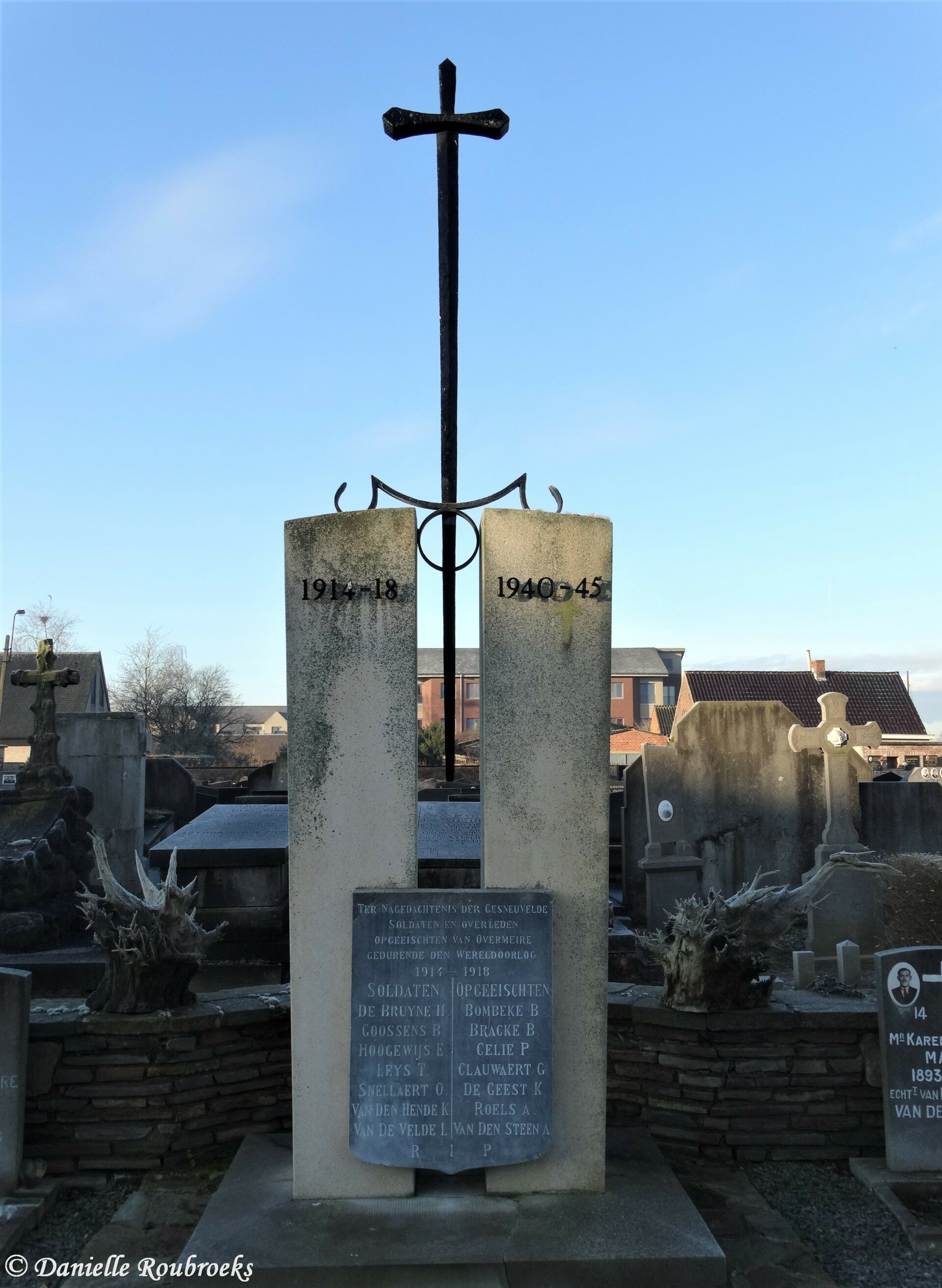 Overmere Communal Cemetery has a large plot of veteran graves from the First and the Second World War and a War Memorial.