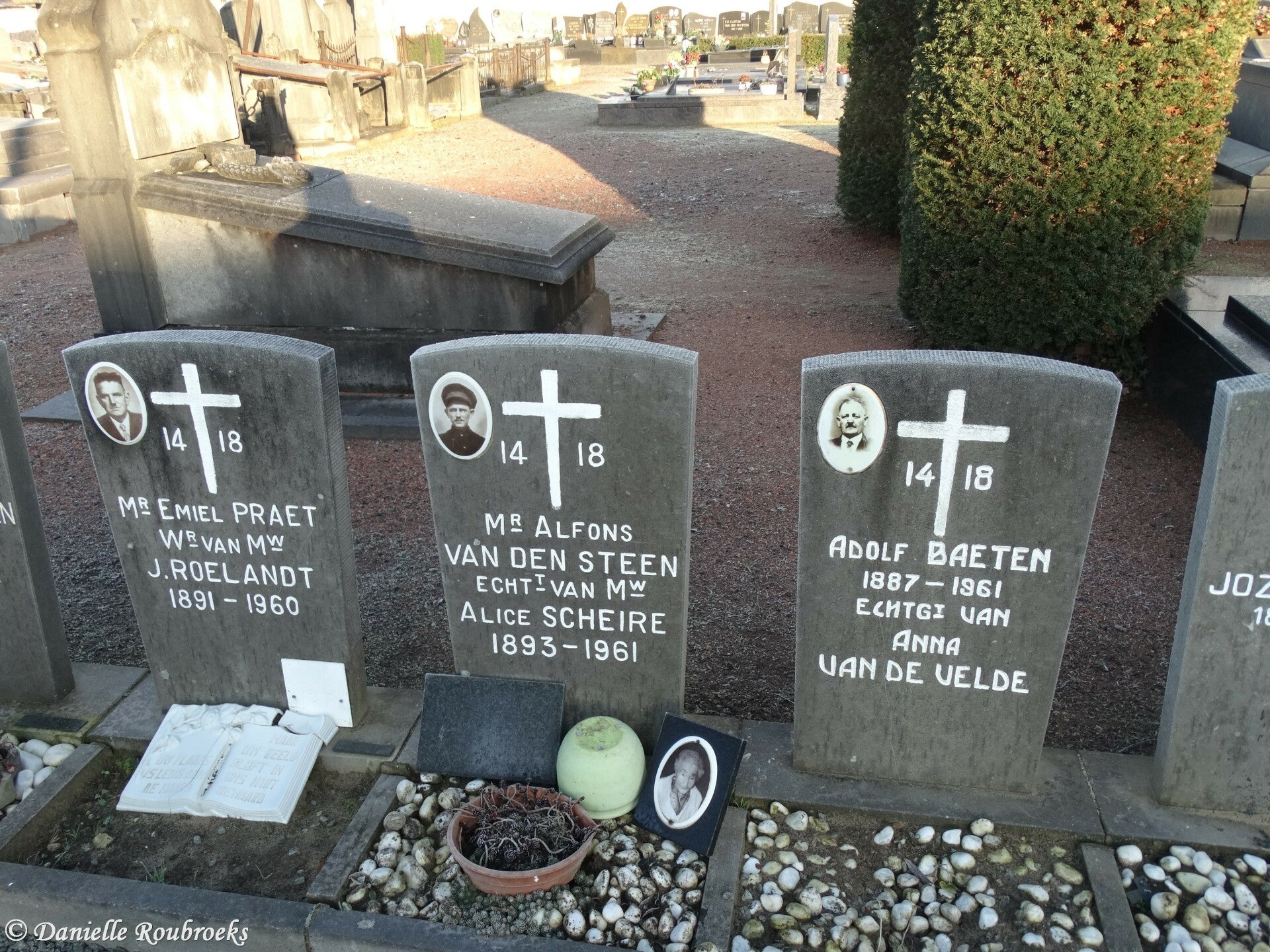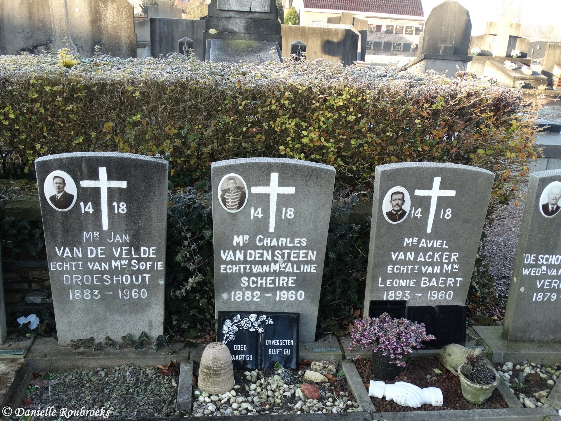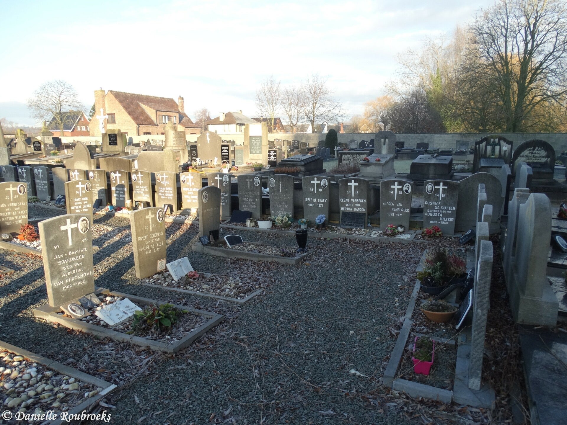 Overmere Communal Cemetery has a large plot of veteran graves from the First and the Second World War and a War Memorial.