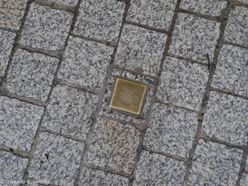 A Stolperstein literally "stumbling stone", metaphorically a "stumbling block" is a sett-size, 10 by 10 centimetres (3.9 in × 3.9 in) concrete cube bearing a brass plate inscribed with the name and life dates of victims of Nazi extermination or persecution.
