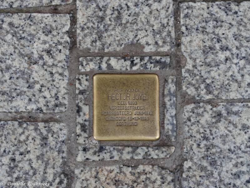 During the First World War he became friends with Father Scheutist Jozef Raskin. During the first weeks of the Second World War, the Normal School was converted into an emergency hospital under the impulse of director Louise Legros and her husband Hector Joye. They called on their friend and comrade in arms from the First World War, Joseph Raskin, to help to collect the necessary medical material. Together they formed a strong team and they called themselves 'Leopold Vindictive'. A found pigeon was released on July 12, 1941 and returned to its loft in England the same day, with the precious information in a tube on its leg. Afterwards they failed to re-establish contact with the English. Through repeated attempts to make contact via radio messages, the Germans became interested in 'Leopold Vindictive'. Eventually they tracked down the group and Jozef Raskin, Hector Joye and Arseen Debaillie were arrested. On June 25, 1942, Hector Joye was arrested and transferred to the prison of Saint-Gillis (Brussels). The three men were dragged via the prisons of Brauweiler, Bochum and Wuppertal to the Esterwegen camp where they were eventually brought before a German 'people's tribunal' in nearby Papenburg. The trial was a farce, the death penalty was already determined in advance. Hector Joye, Arseen Debaillie and Joseph Raskin were guillotined in Dortmund in quick succession on the same day, October 18, 1943.
