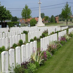 The cemetery contains 1,029 Commonwealth burials and commemorations of the First World War. 158 of the burials are unidentified and there are special memorials to seven casualties known or believed to be buried in the cemetery. Other special memorials bear the names of three soldiers buried in German cemeteries, whose graves could not be found on concentration. The cemetery was designed by Charles Holden.