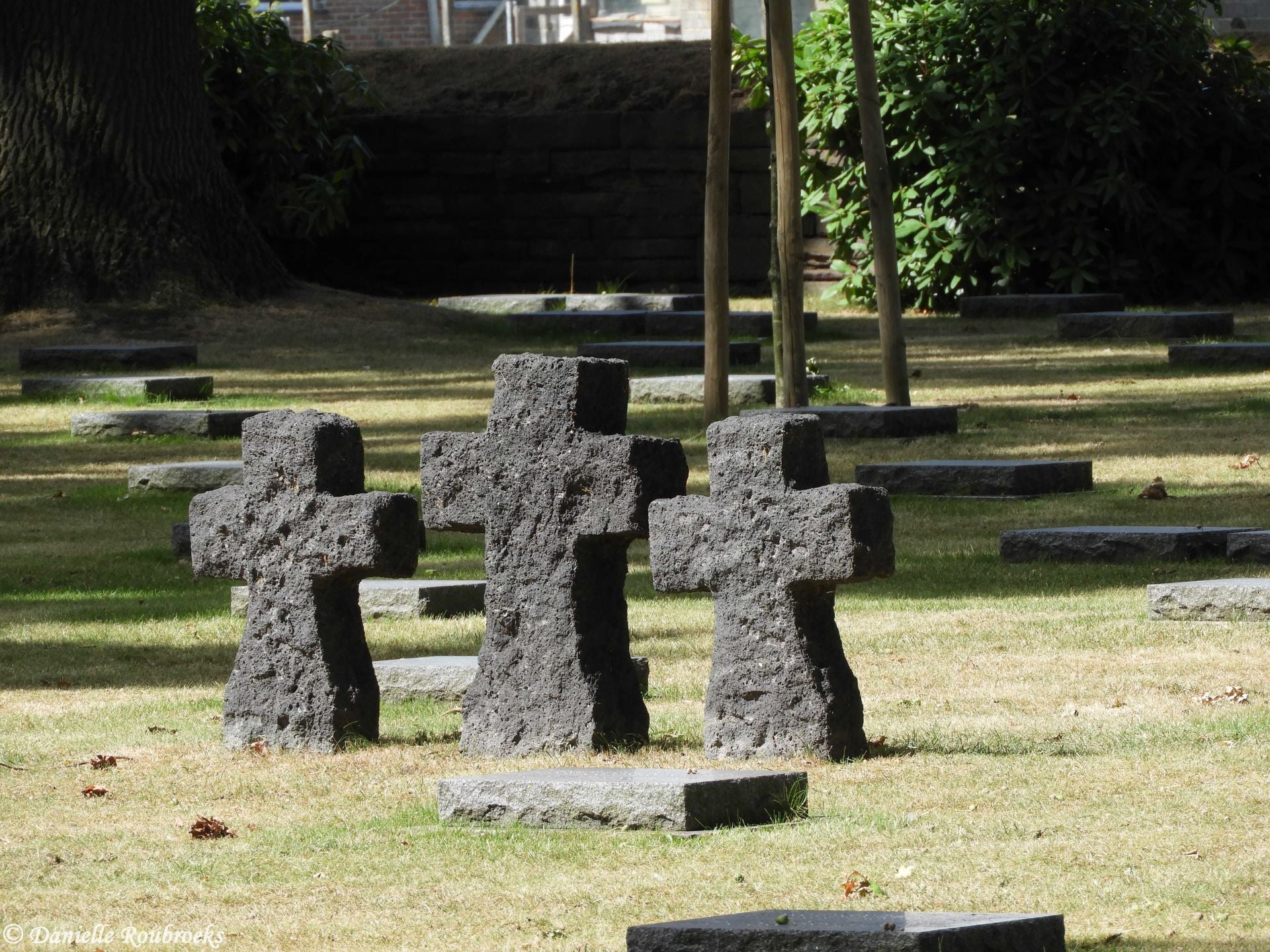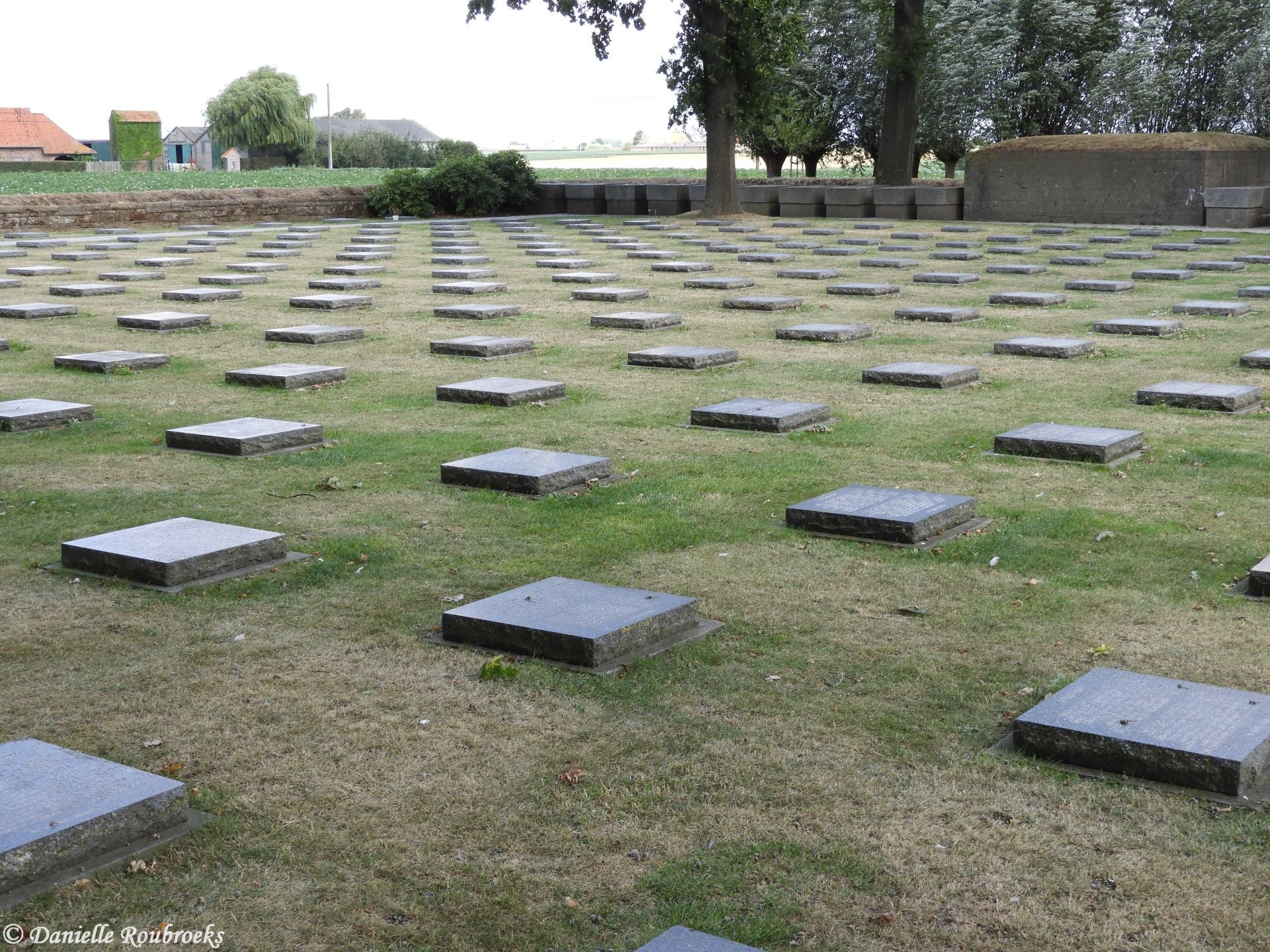 Because the most place left was in the German military cemetery of Langemarck, all those non-identified exhumed soldiers from Belgium were buried there in a "kameradengraf" (comrade grave) during the period of 1956-1958. 366 graves behind the partition wall were moved to make room for the enormous grave. Almost 25,000 remains were buried here.