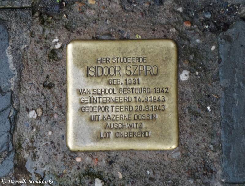 Isidoor Spziro could no longer register at the atheneum due to the German occupier's regulation stating that Jewish children were no longer admitted to official schools from the 1942-1943 school year. His stumbling stone is set apart.