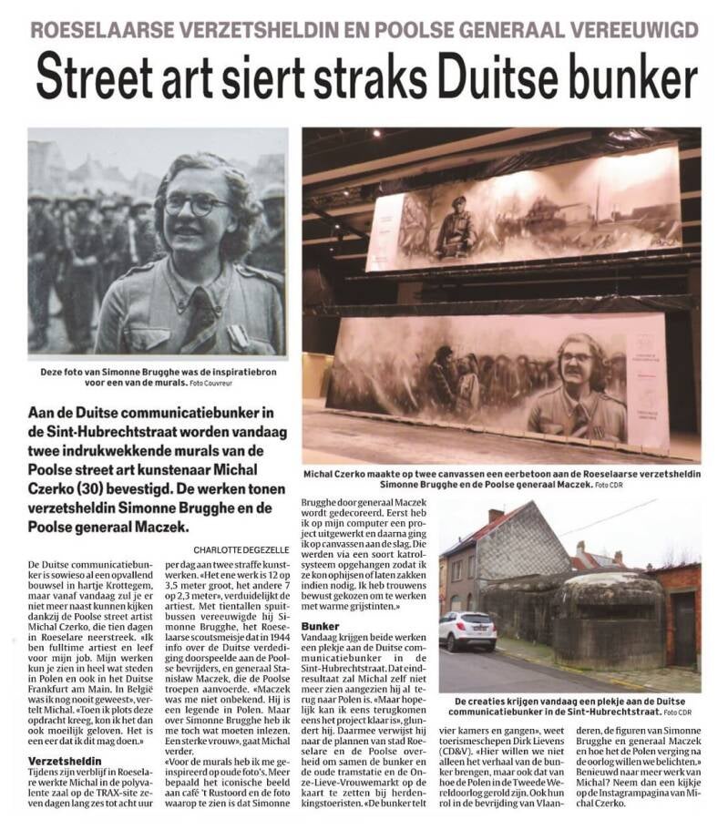 In the Sint-Hubrechtsstraat, near number 51, there is a German bunker from the Second World War. Two canvases by artist Michal Czerko were hung at this Bunker in December 2021 to commemorate resistance heroine Simonne Brugghe and General Maczek.
