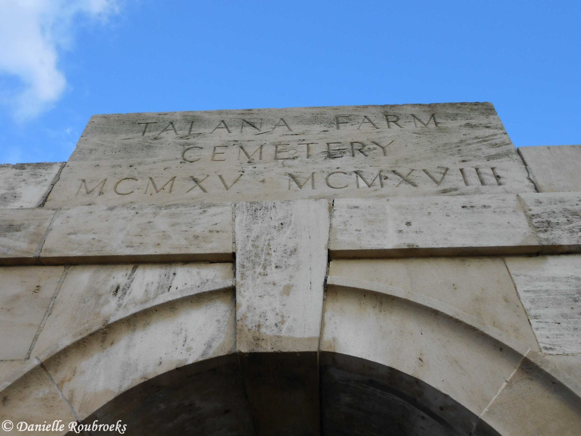 The commune of Boesinghe (now Boezinge) lies on both sides of the Yser Canal. The village itself is on the West side of the canal, and was, during the greater part of the War, directly faced by the German front line on the East side; but to the South of it the German line sloped away from the canal South-Westward, and Talana Farm was thus just a kilometre from the edge of the Salient. Dragoon Camp was across the canal, due East of the village, and within the German lines until the 31st July, 1917. Talana Farm was one of a group of farm houses named by the army from episodes of the South African war. The cemetery was begun by French troops in April 1915, taken over by the 1st Rifle Brigade and 1st Somerset Light Infantry in June 1915, and was used by fighting units until March 1918. Buried in Plot II, Rows E and F are a number of men of the 1st East Lancashire Regiment who died in a small, but successful attack on 6 July 1915. Plots III and IV contain many 49th (West Riding) Division graves and also those of the artillery units that took over the ground in August 1917.
