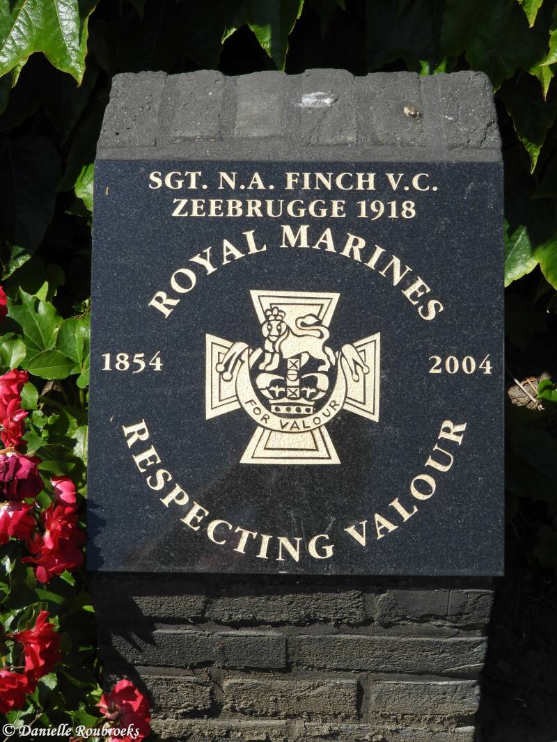 “On 22/23 April 1918 at Zeebrugge, Belgium, Sergeant Finch was second in command of the pom-poms and Lewis gun in the foretop of HMS Vindictive. At one period Vindictive was being hit every few seconds, but Sergeant Finch and the officer in command kept up a continuous fire, until two heavy shells made direct hits on the foretop killing or disabling everyone except Sergeant Finch who was, however, severely wounded. Nevertheless, he remained in his battered and exposed position, harassing the enemy on the Mole until the foretop received another direct hit, putting the remainder of the armament completely out of action. His award was by virtue of ballot.”