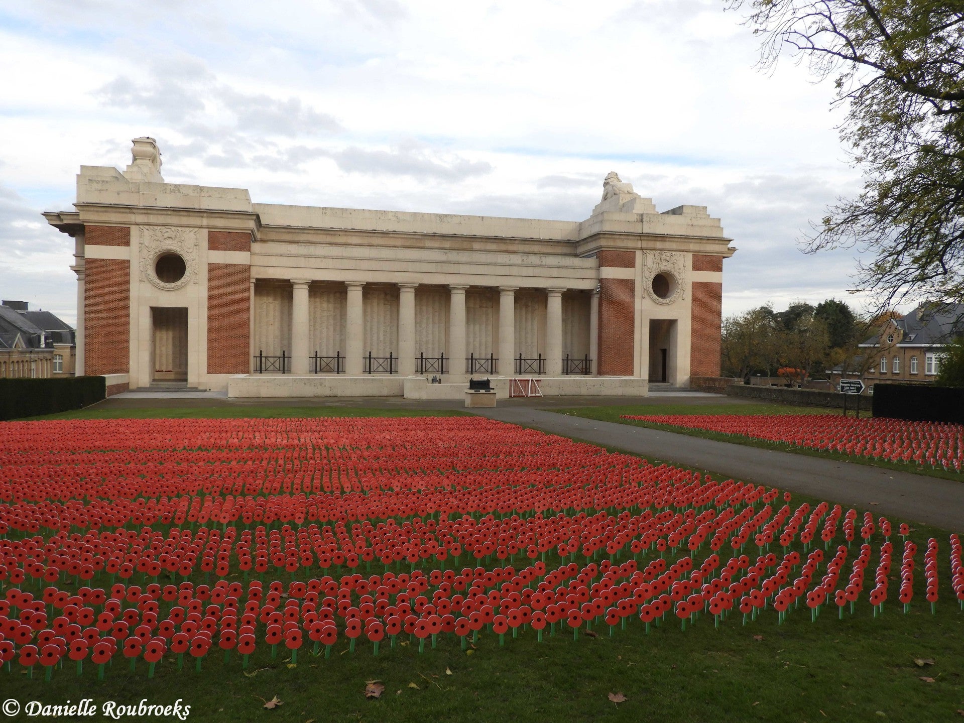 For the past few years, The Royal British Legion has been planting thousands of red artificial poppies on the grass field next to the Menin Gate prior to Armistice day. The field will stay in place till Christmas 2018.