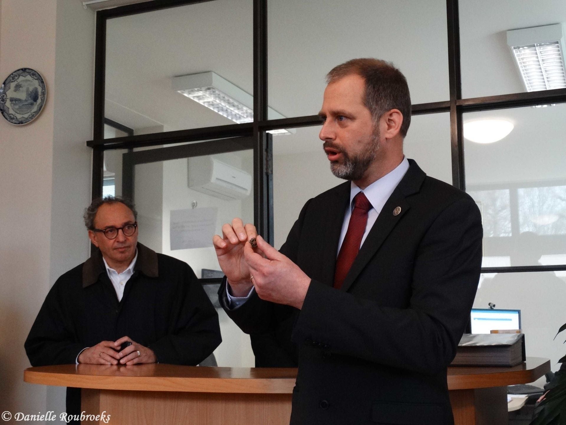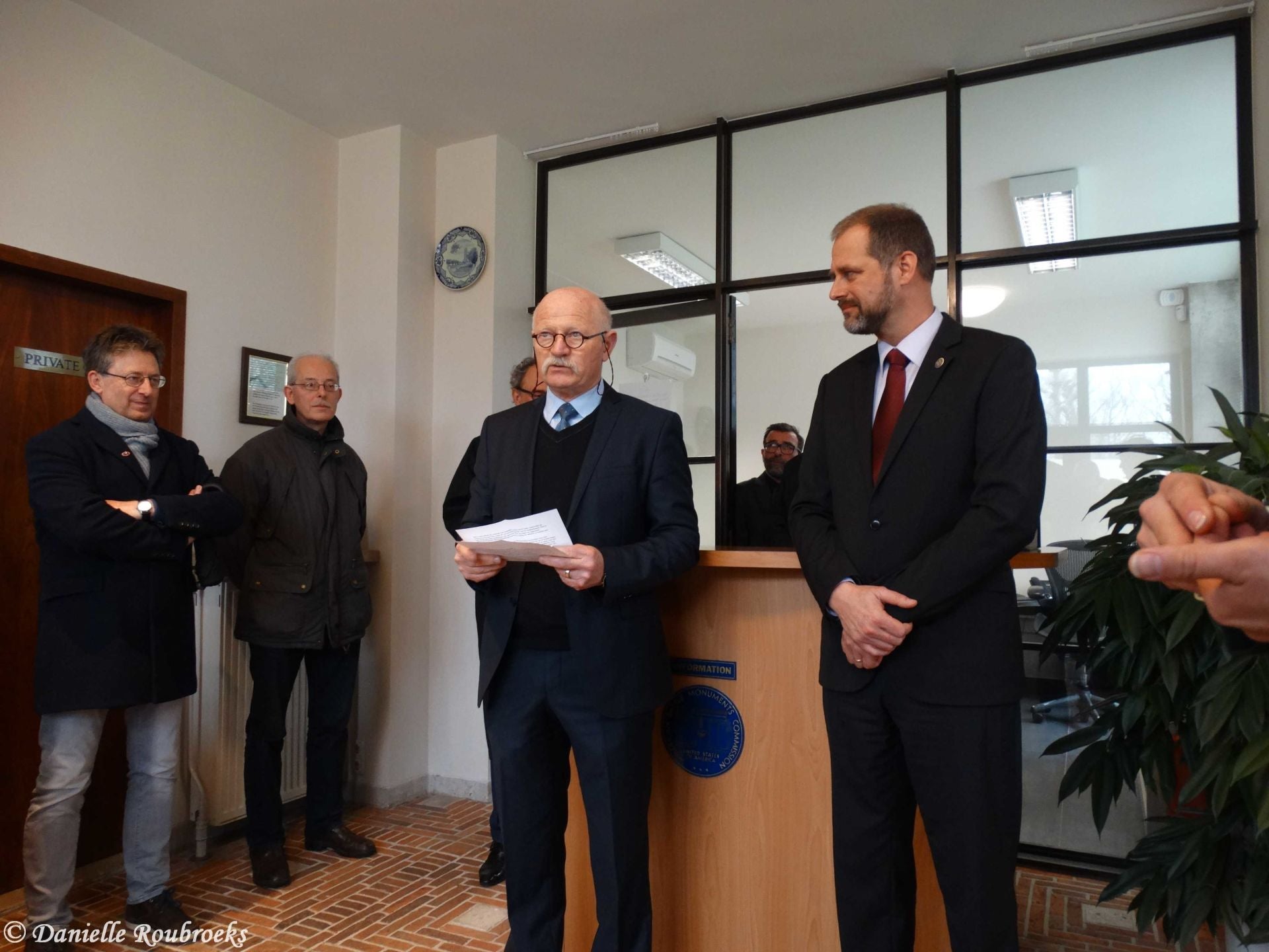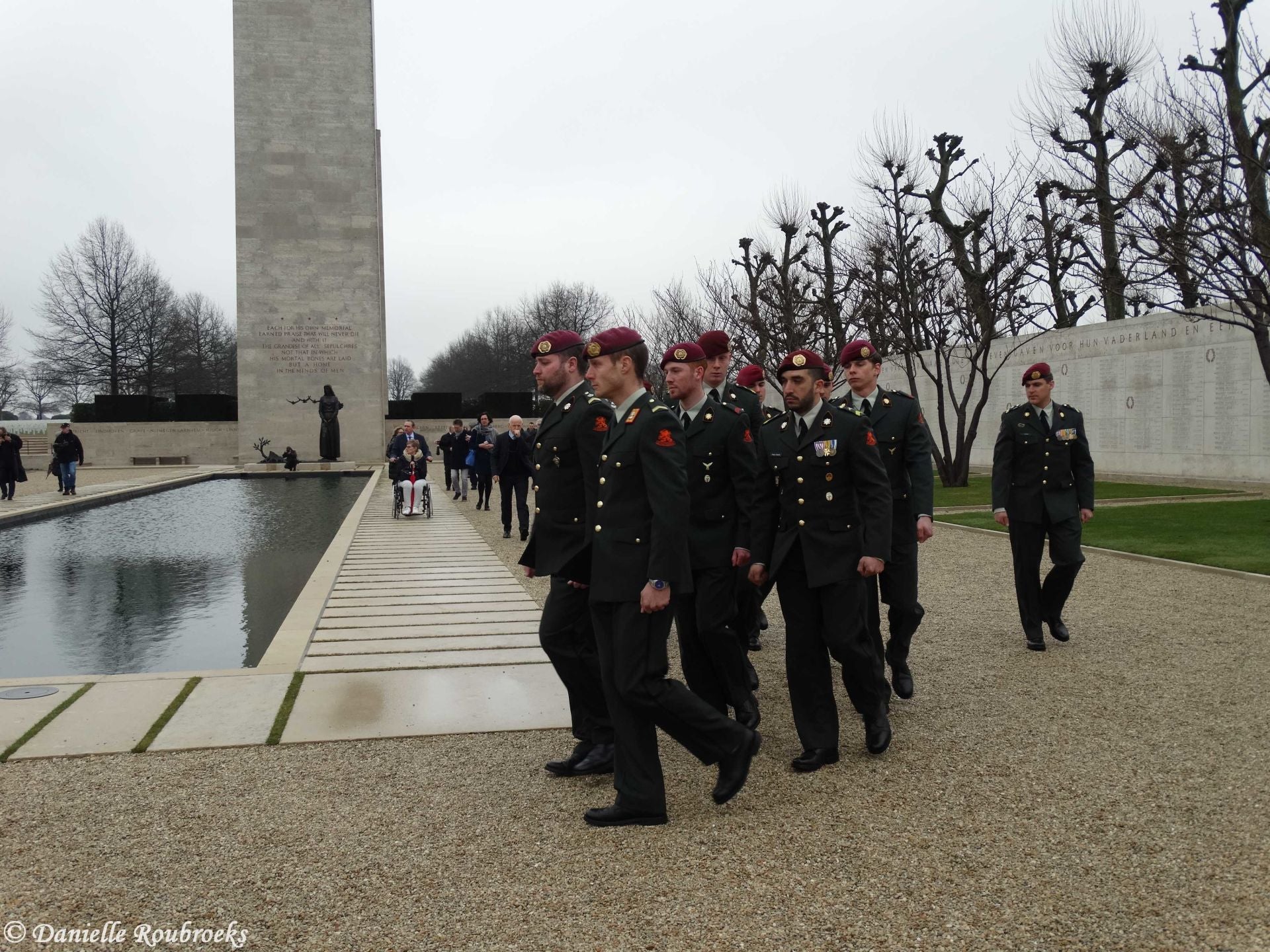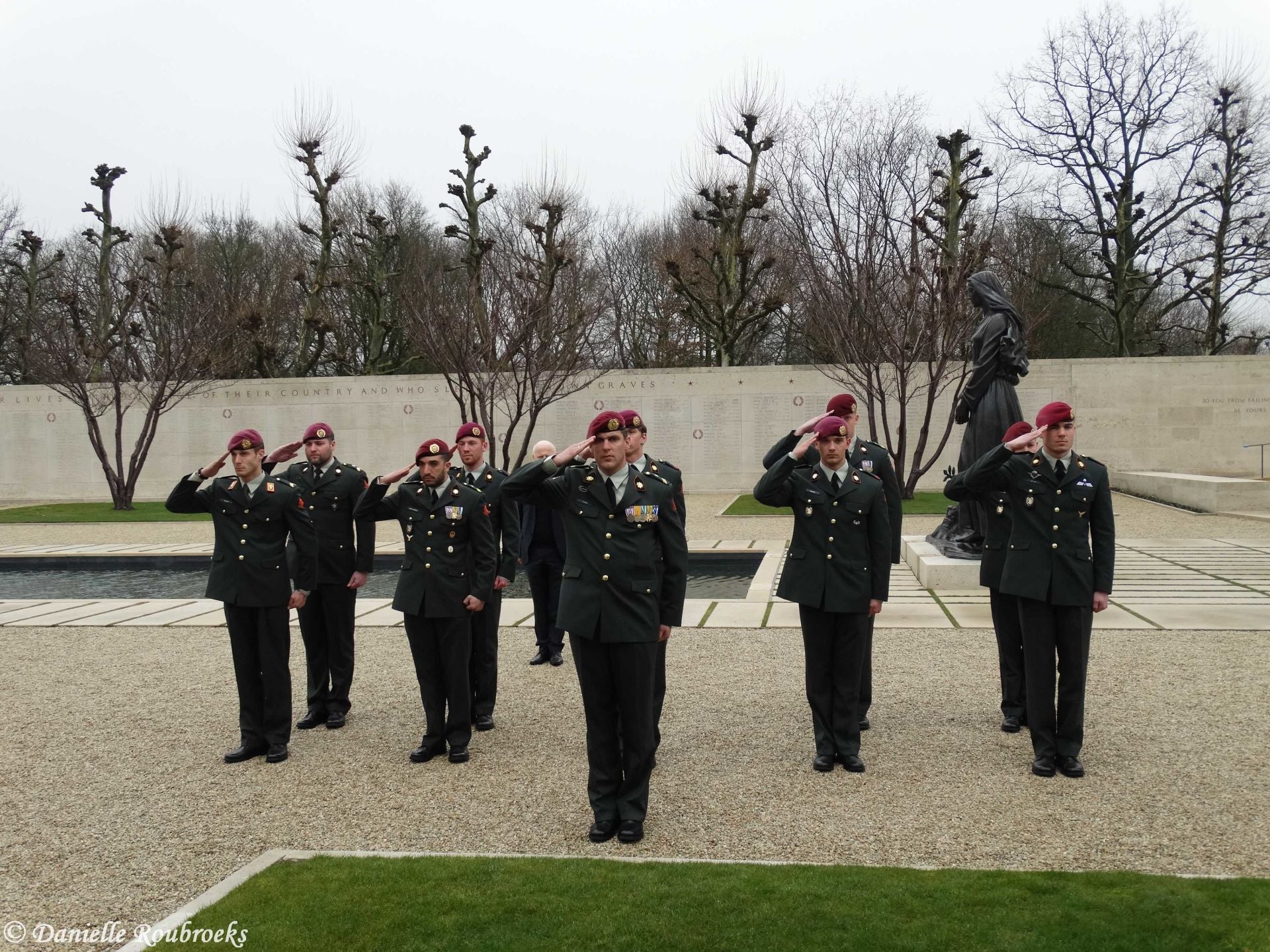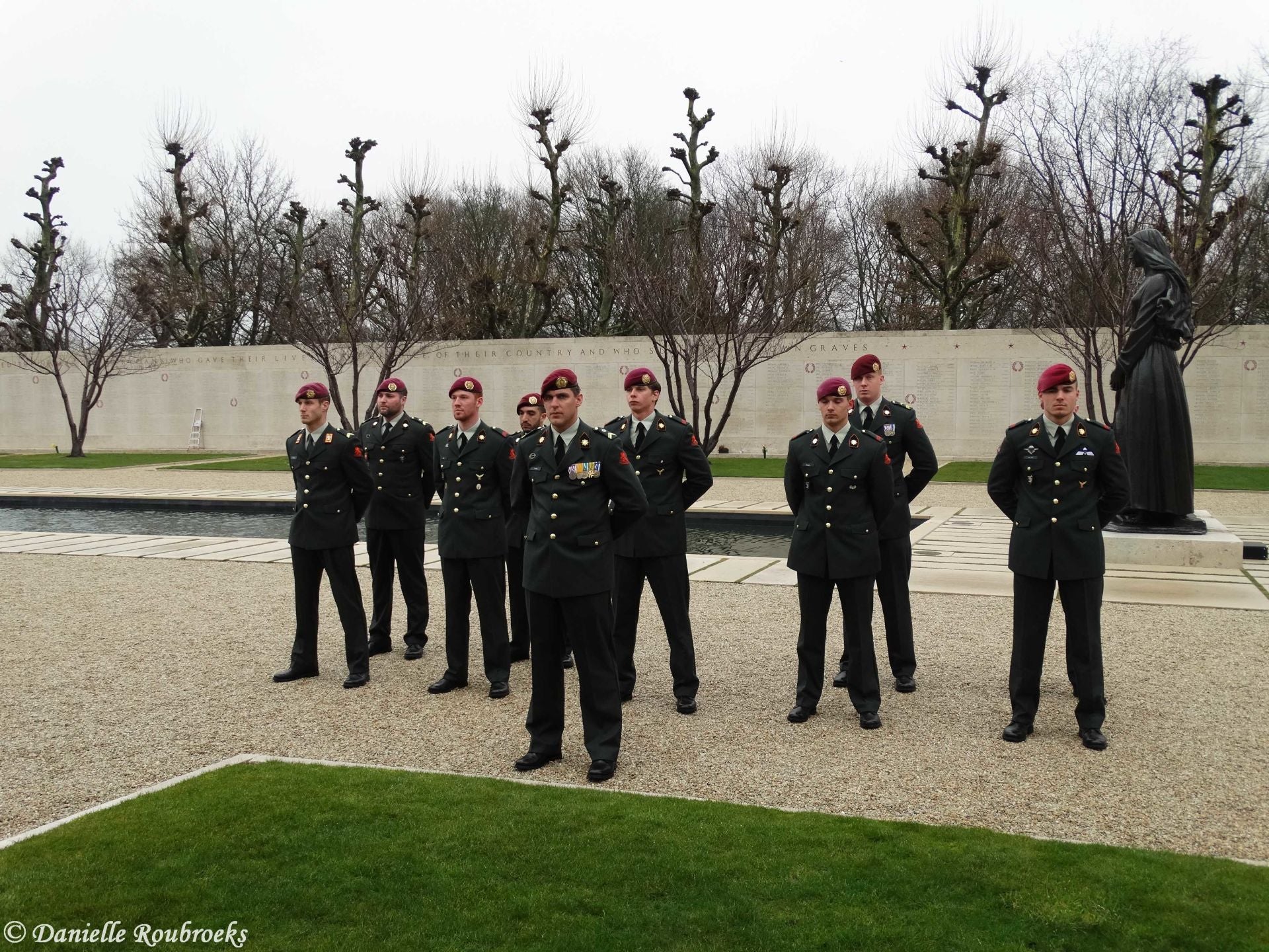 At the names of five missing American soldiers on the Wall of Missing in the Margraten cemetery, rosettes were placed on Thursday, March 22, 2018 because these men have been found and identified. A mortar group of the Airmobile Brigade was also present at this ceremony.