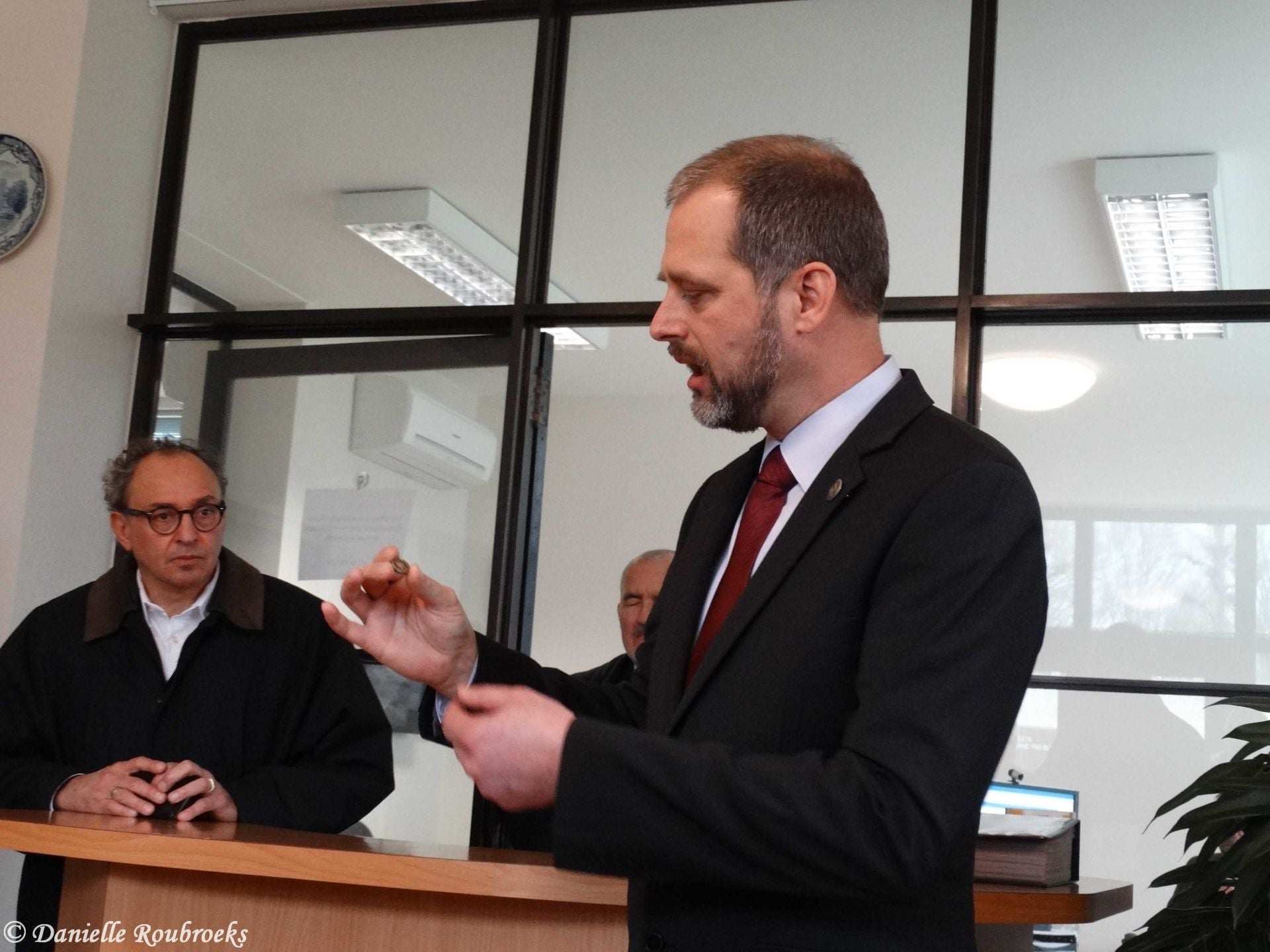 The rosettes, executed in bronze and with a diameter of 2,06 cm, show a rosemary leaf wreath with an eight point compass rose in the middle, symbol for searching and finding missing persons.