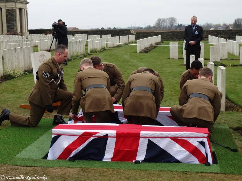 On Thursday March 15, 2018, a burial service was held at Orchard Dump Cemetery, France, for two soldiers of the First World War.