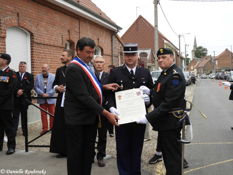 As part of the 150th anniversary of their creation, the troops of the Fusiliers du Saint Laurent (Canada) are organizing a trip to France in mid-August. It is in this context that, being part of the heirs of the fighters of late August-early September 1918, during which they suffered considerable losses in Cherisy, they go through this small village on August 11th. During this visit, the municipality will honor the detachment by presenting the "Right of City".
