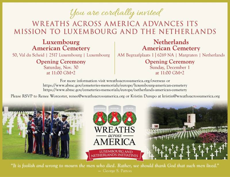 Wreaths Across America Overseas organised a wreath laying on Saturday 30th November 2019 in Luxemburg American Cemetery.