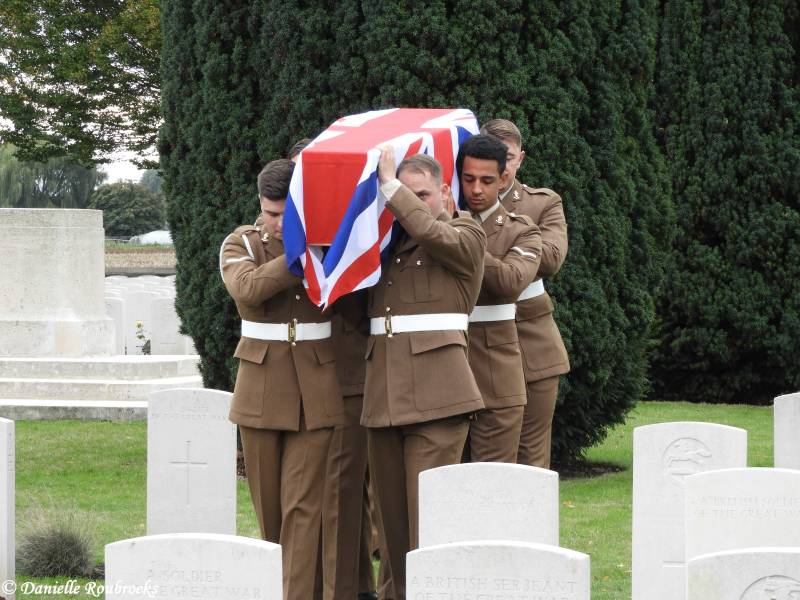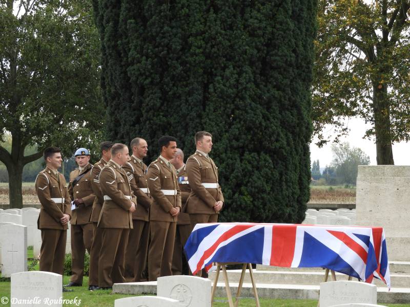 A burial service was held for an unknown soldier at 3.30pm at Vieille-Chapelle New Military Cemetery on Tuesday 15th October 2019.