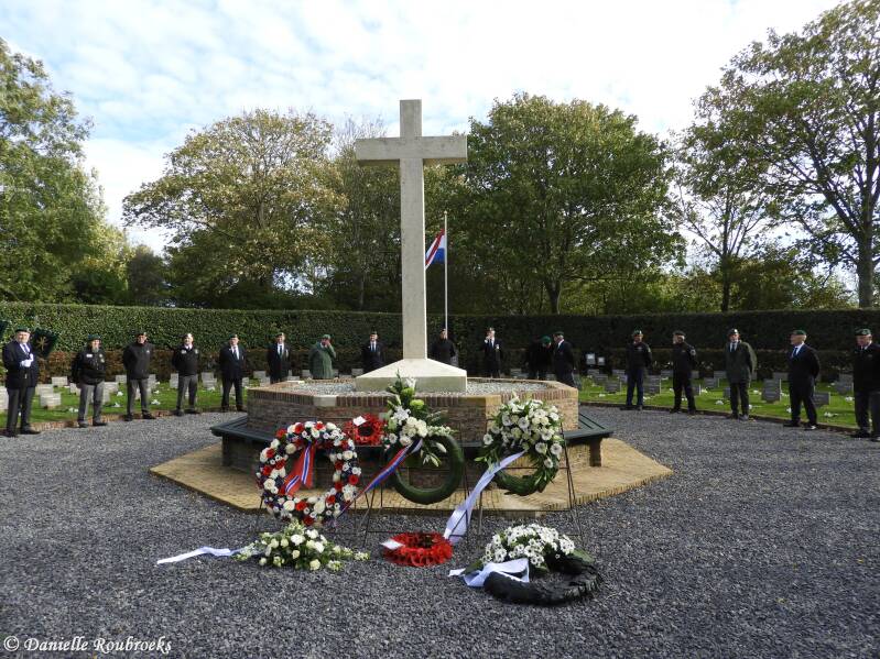 Remembrance ceremony for the civilian victims of Westkapelle at the cemetery around the light house. For all those who died at the liberation on the 1st November 1944, most of them drowned in the cellar of the windmill when the dike was bombarded and the village flooded.