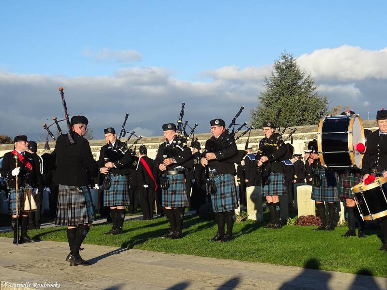 A remembrance ceremony was held at Tyne Cot Cemetery on the 11th November 2023. The commemoration ceremony is organized by the British Embassy, in collaboration with the Municipality of Zonnebeke. With performances by the West Yorkshire Police Band and the Flanders Memorial Pipe Band.