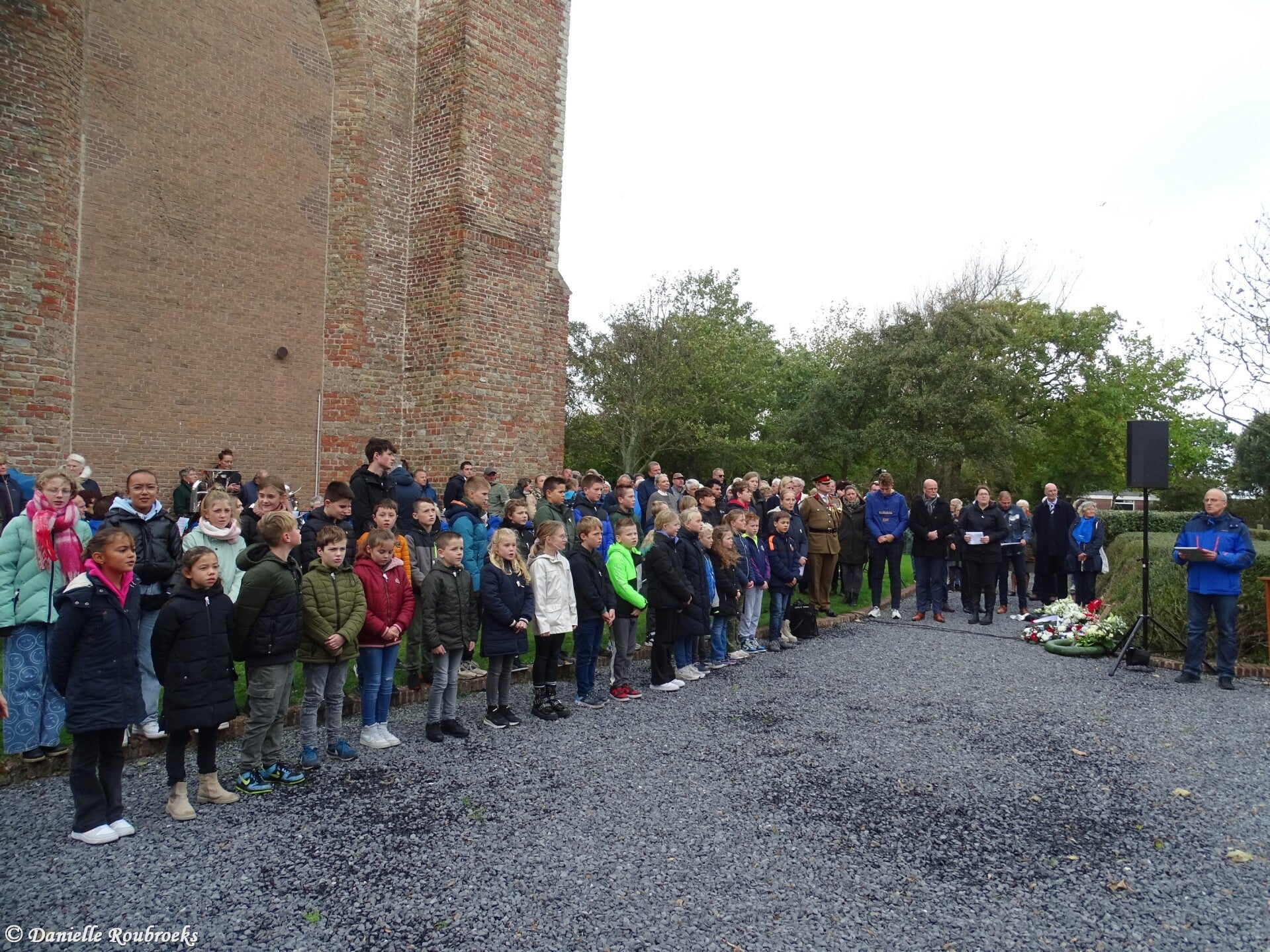 Remembrance ceremony for the civilian victims of Westkapelle at the cemetery around the light house. For all those who died at the liberation on the 1st November 1944, most of them drowned in the cellar of the windmill when the dike was bombarded and the village flooded.