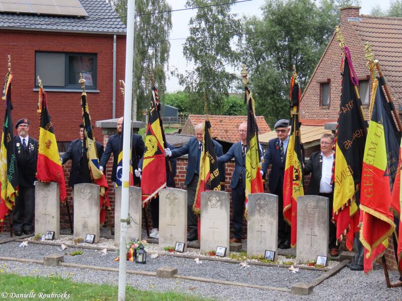 We also paid tribute to the seven crew members of the Lancaster III JA976 "S for Sugar" , crashed April 28, 1944, resting in Webbekom. Six died in the crash, a seventh died on May 1, 1944. Pilot Blenkinsop remained alive and was able to go into hiding with the resistance, but was later arrested in a raid in Meensel-Kiezegem. He died on January 23, 1945 in Neuengamme and has a memorial on the field of honor in Meensel-Kiezegem.