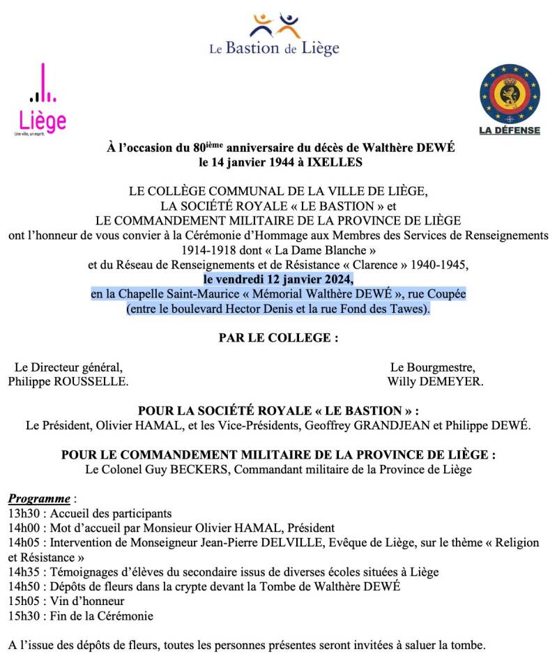 Friday 12th January 2024 a remembrance ceremony took place for resistance fighter Walthère Dewé, the head of the “Dame Blanche” Network.