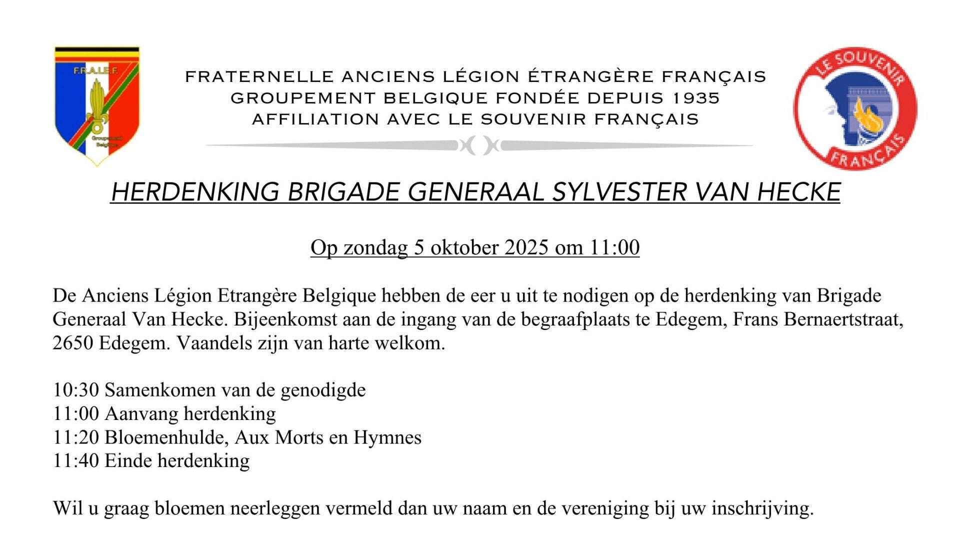 Remembrance ceremony for General Sylvester Van Hecke on Sunday 5th October 2025 at the general cemetery in Edegem.