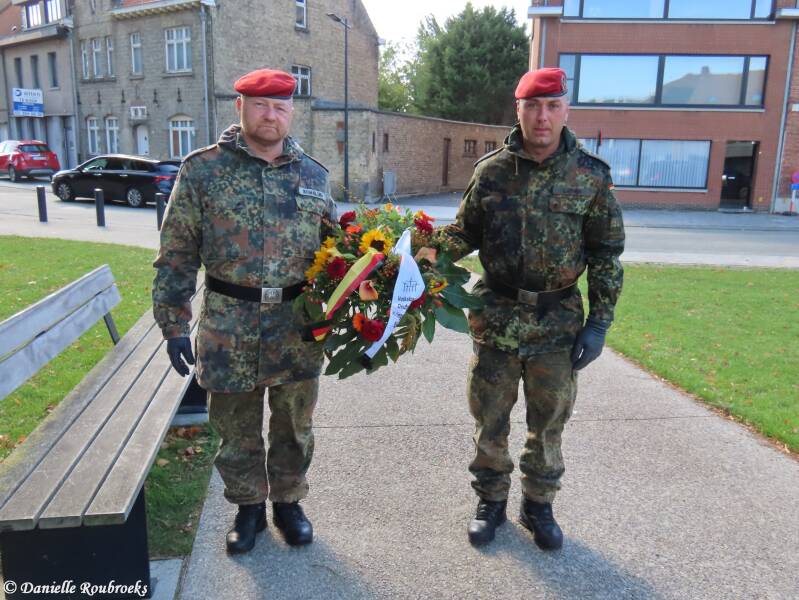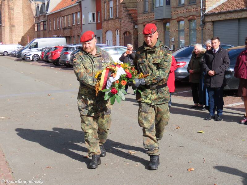Silent wreath-laying ceremony at the monument on the market square in Langemark, representing all Belgian victims of war and tyranny.