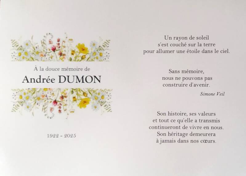 Monday 10 February 2025 a funeral service was held in the Sint Anna church in Ukkel for Andrée Dumon, resistance fighter in the Second World War.