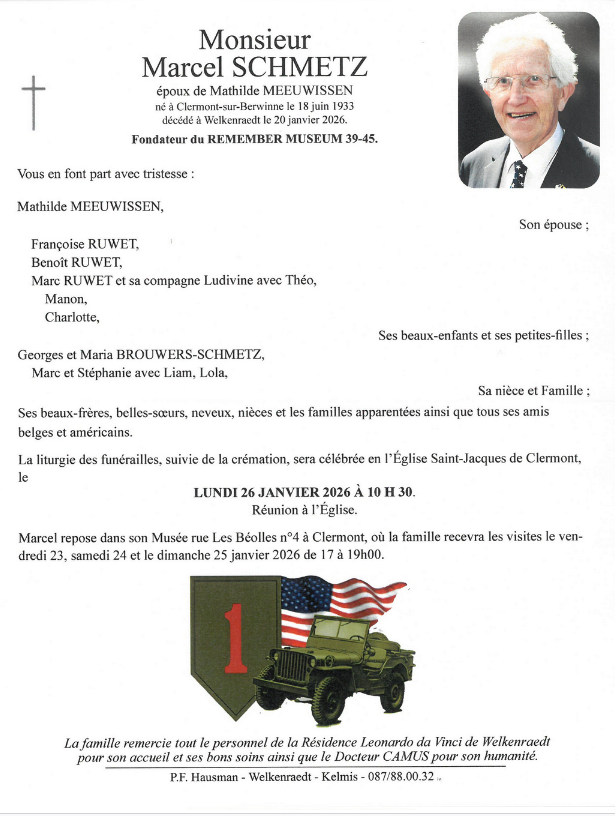 Today, Monday 26th January 2026, we said goodbye to Marcel Schmetz, a unique man with a big, warm heart...and it was a fitting tribute with the US Honor Guard. Museum Remember 39-45