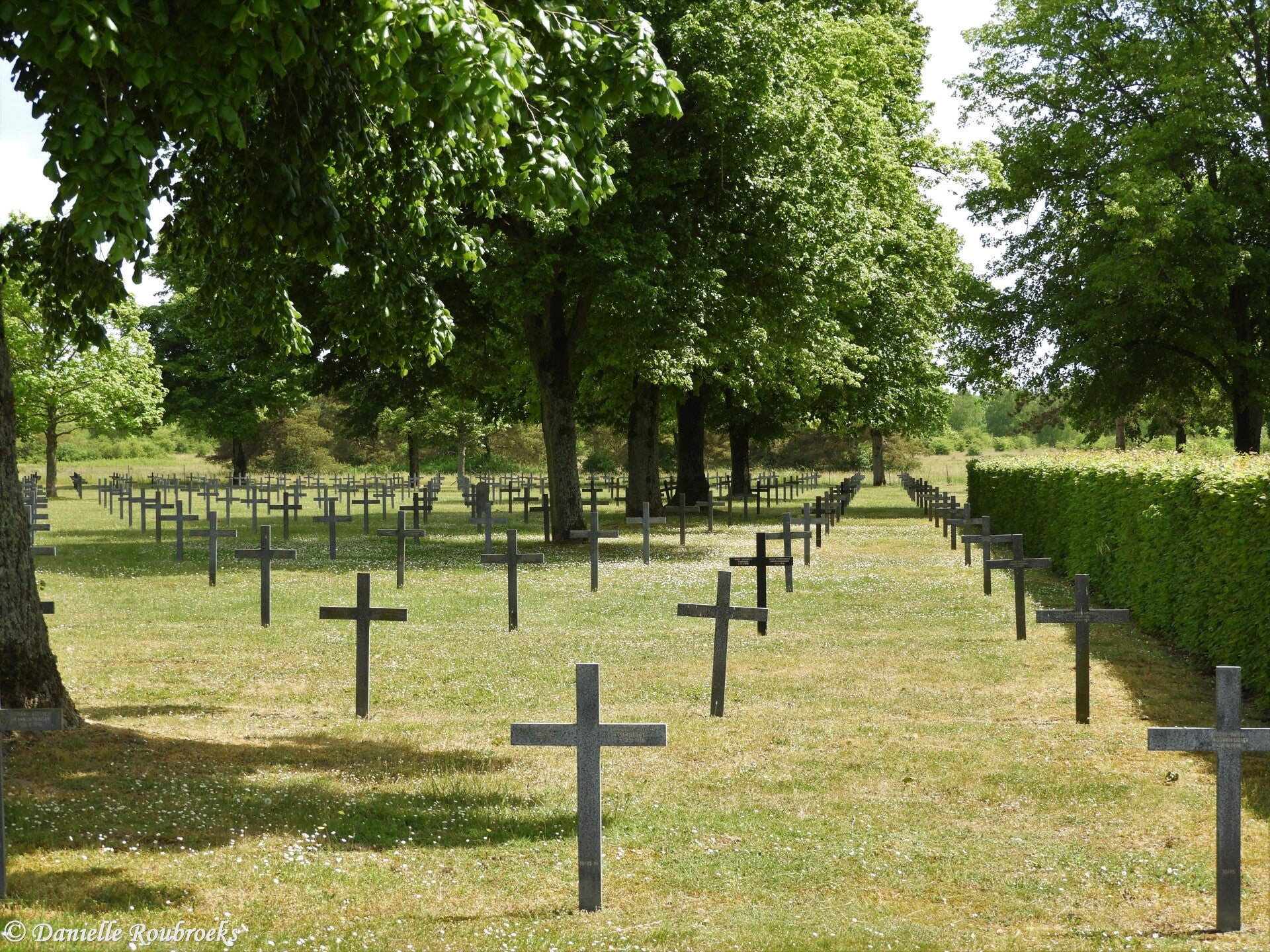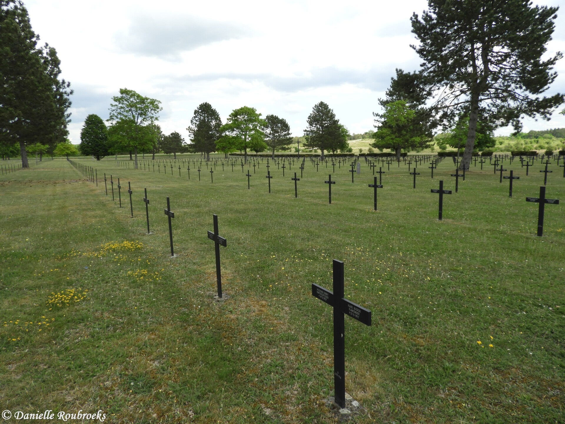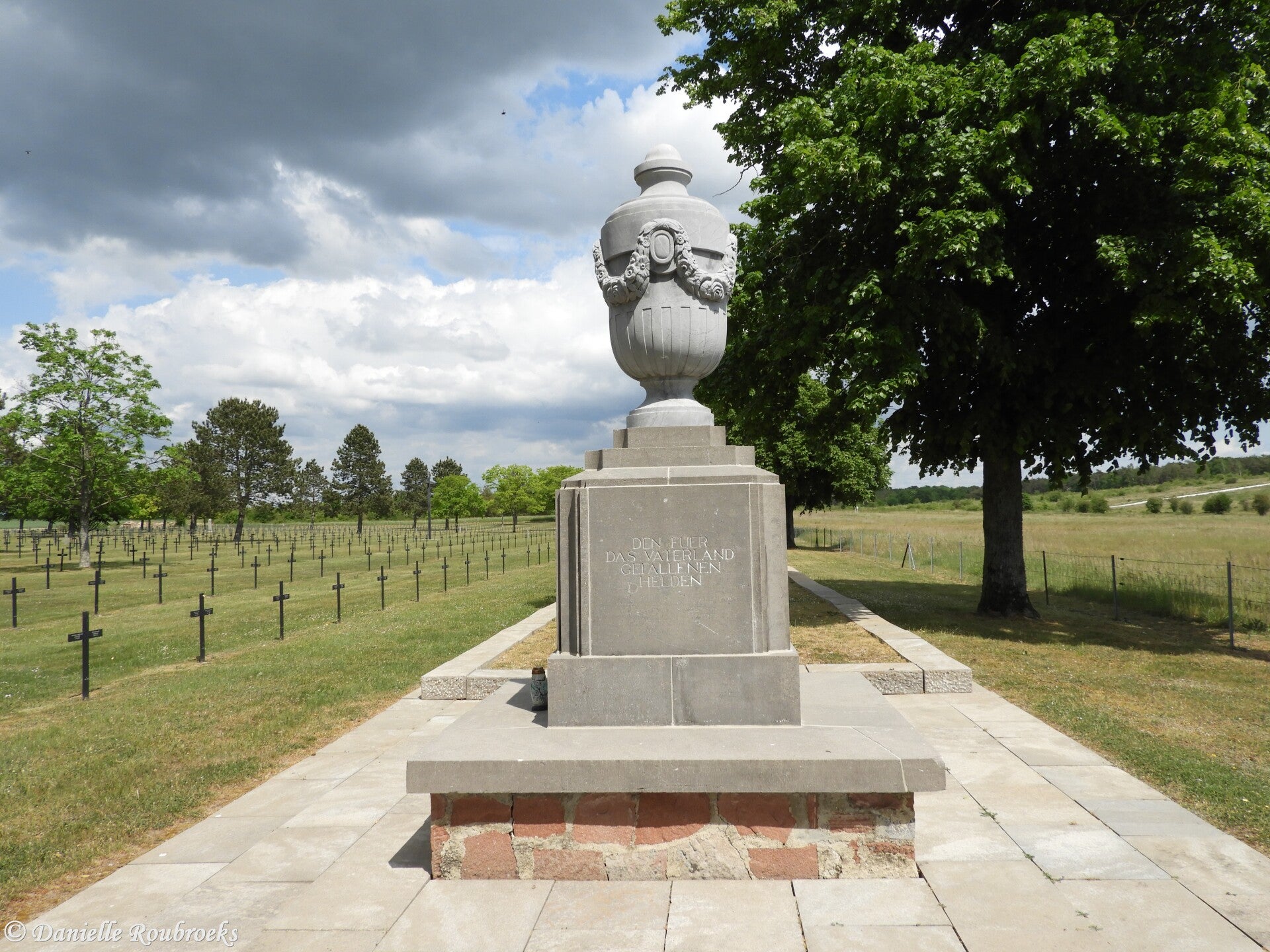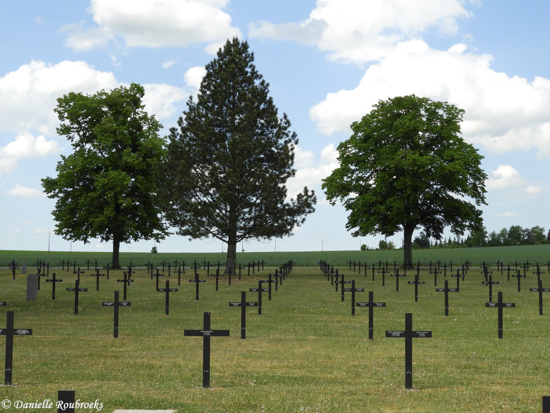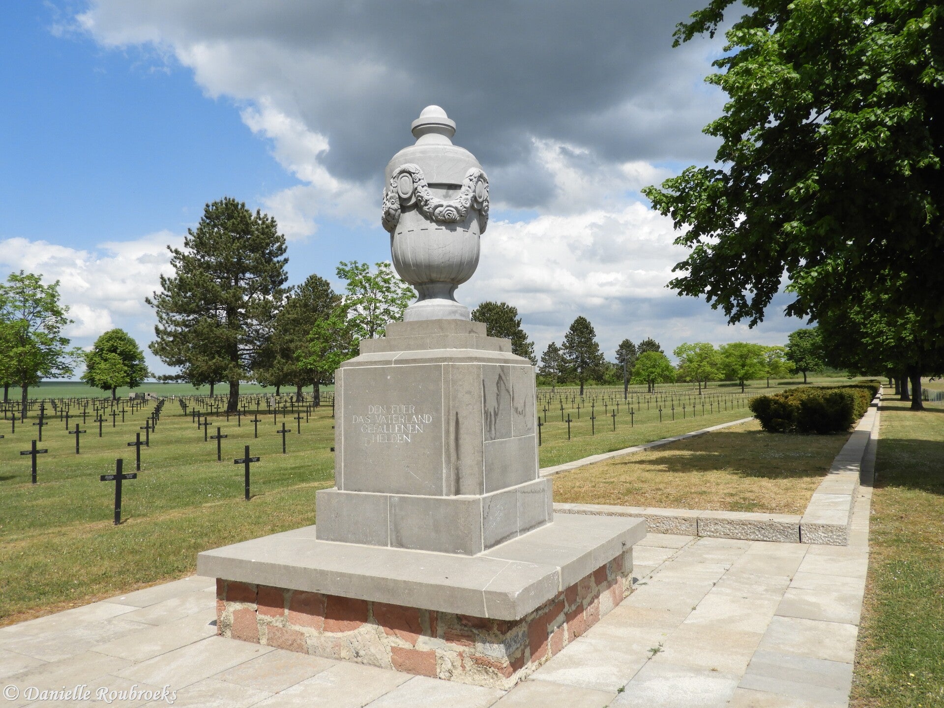 The original German military cemetery Sissonne was laid out on the site of a military training area in 1915 by the responsible German stage inspection. The fallen soldiers from 12 (Saxon) army corps from the fighting in summer 1914 found their final resting place here. This was followed by soldiers from the stage service who died from their wounds or who died from illness or accidents. Finally, the troops embed their fallen from the defensive battles of autumn 1918 until the Germans evacuated them. The fallen opponents were also buried in special sections of the cemetery. At the end of 1919, the French military authorities relocated the German and British graves from the area of the training area on its edge. At the same time, the German dead, who were still lying in temporary graves within a radius of 28 kilometers, were transferred to this cemetery. Those resting here belonged to troops whose home garrisons were in almost all countries of the former German Reich.