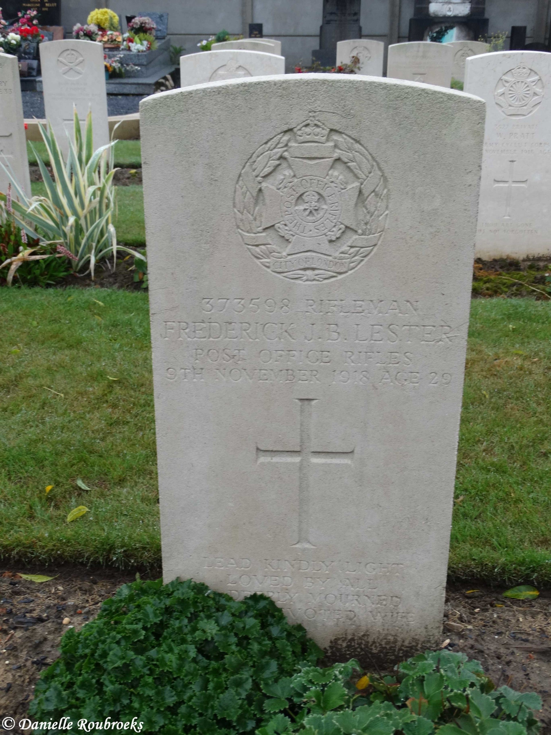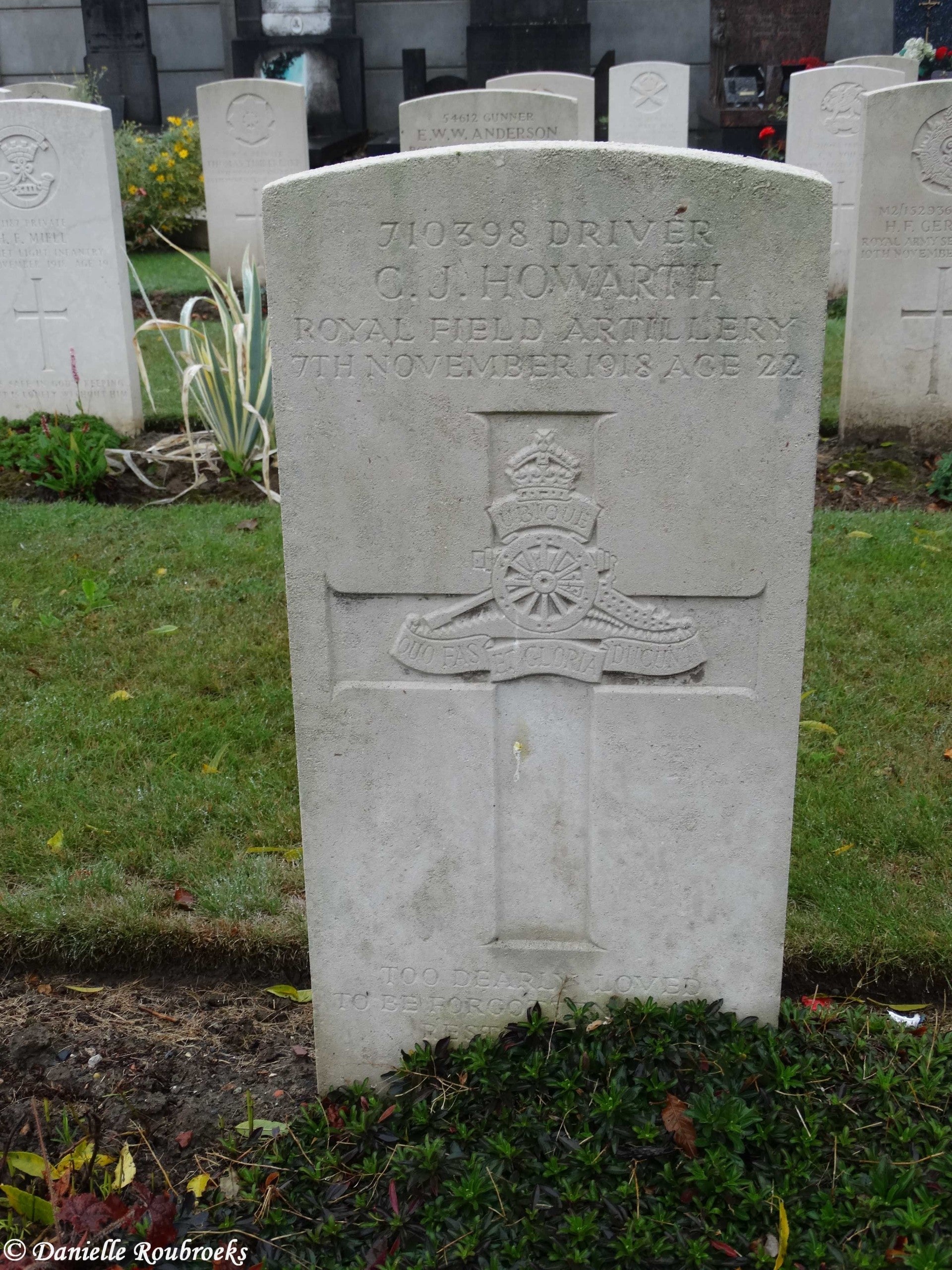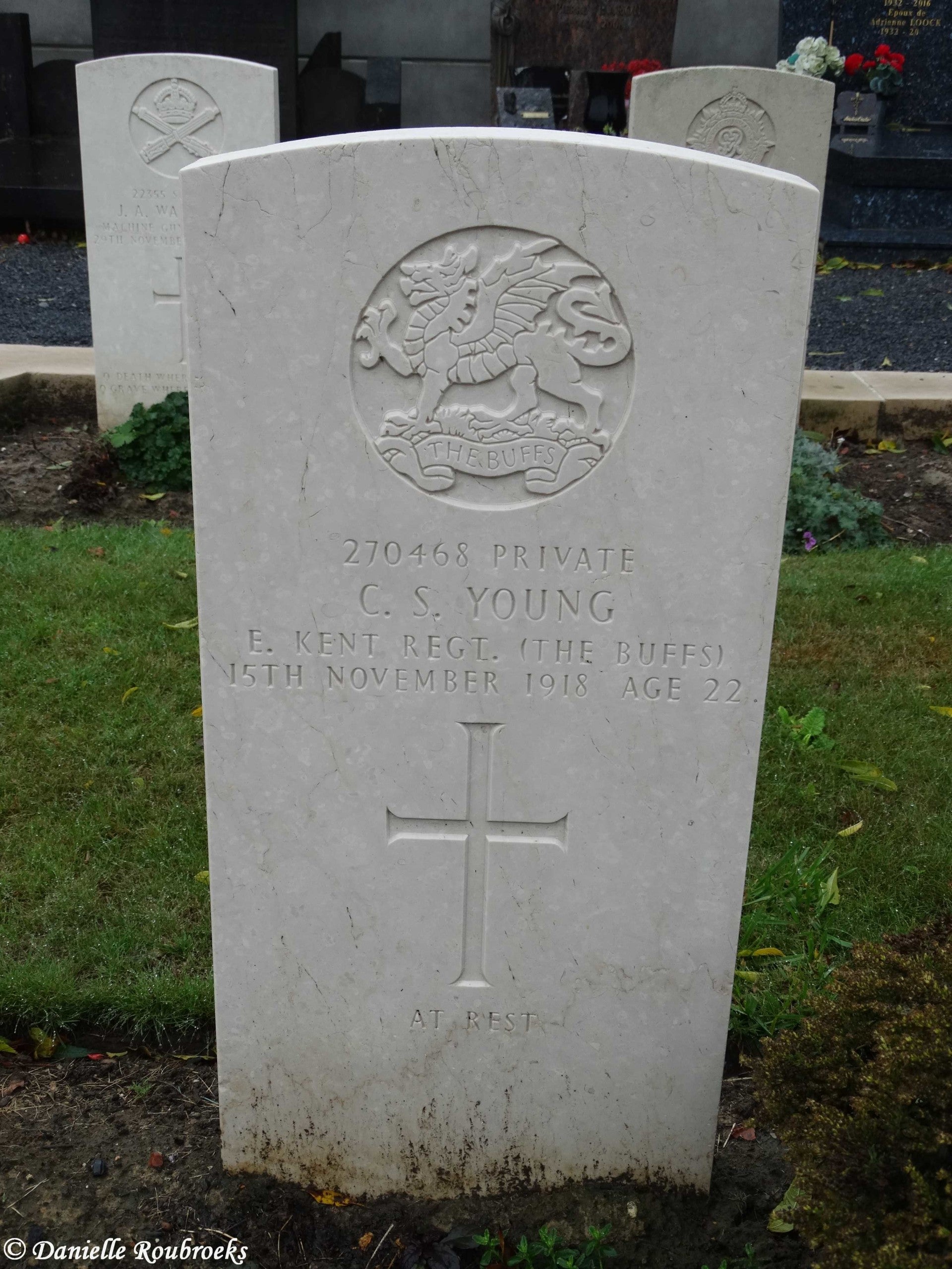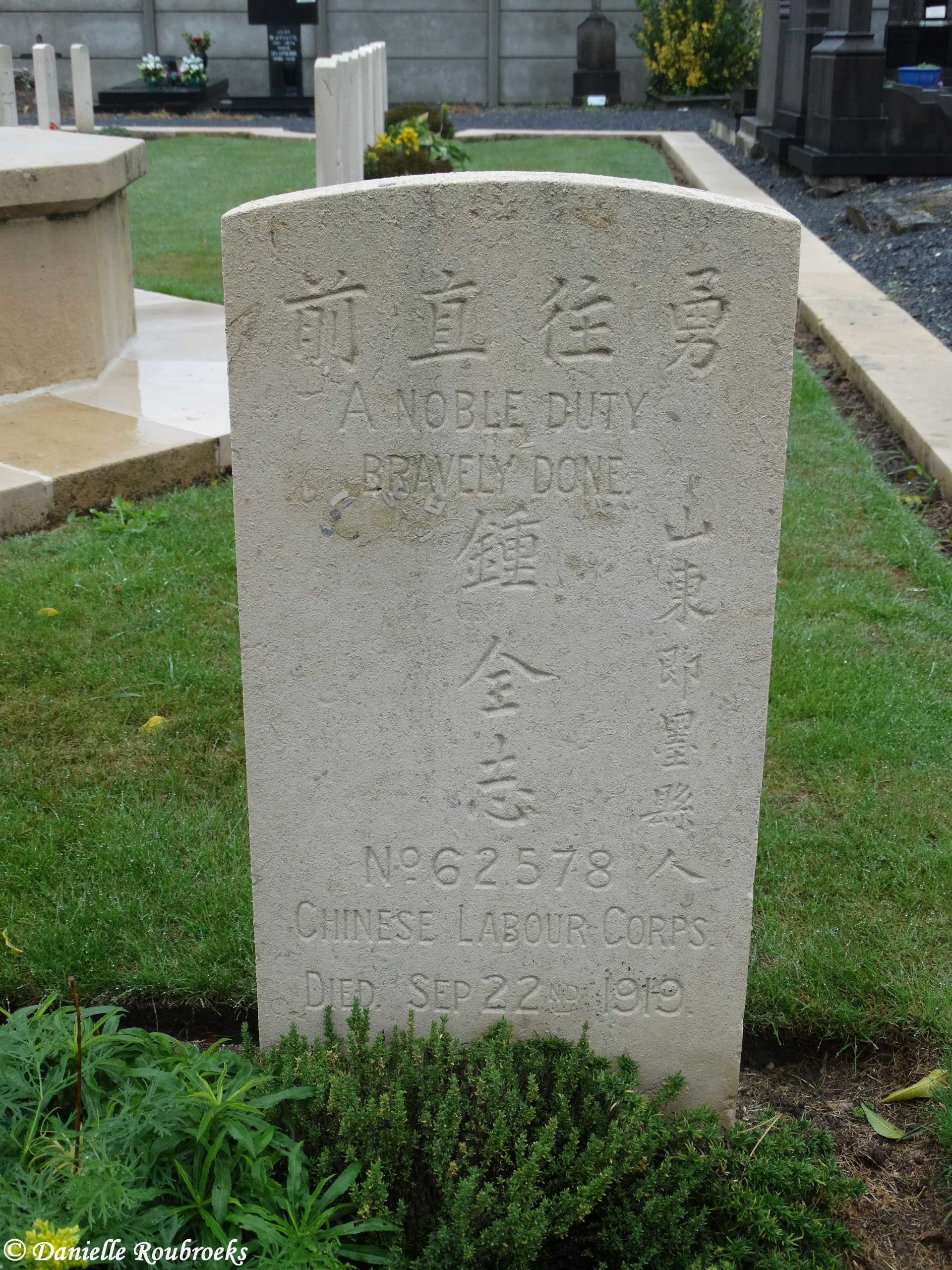 There are now over 50, 1914-18 and a small number of 1939-45 war casualties commemorated in this site. The British plot covers an area of 249 square metres and is enclosed by a low stone curb.The main Commonwealth War Graves plot is on the left near the entrance, and the second plot is 50 metres further along on the right.