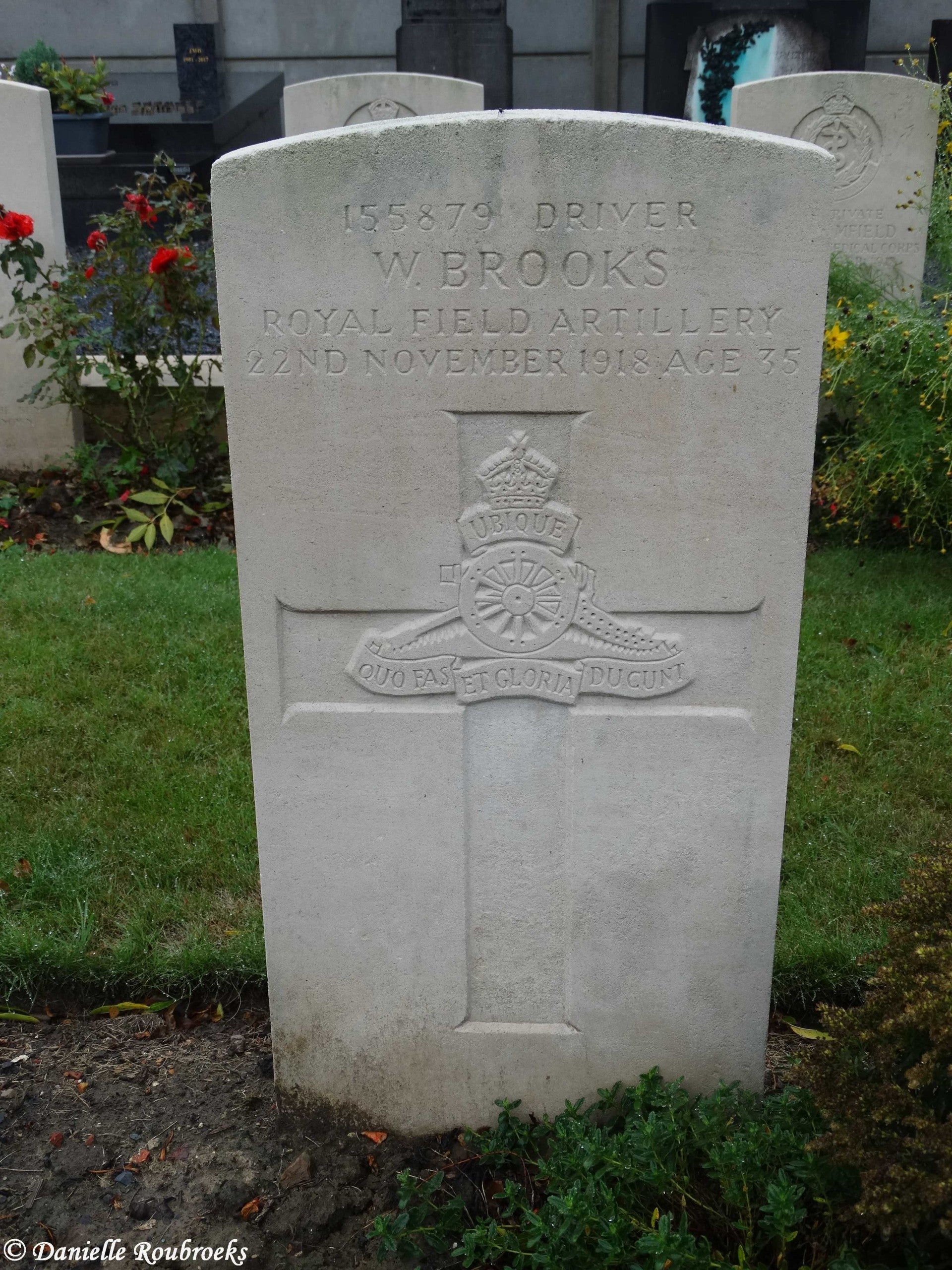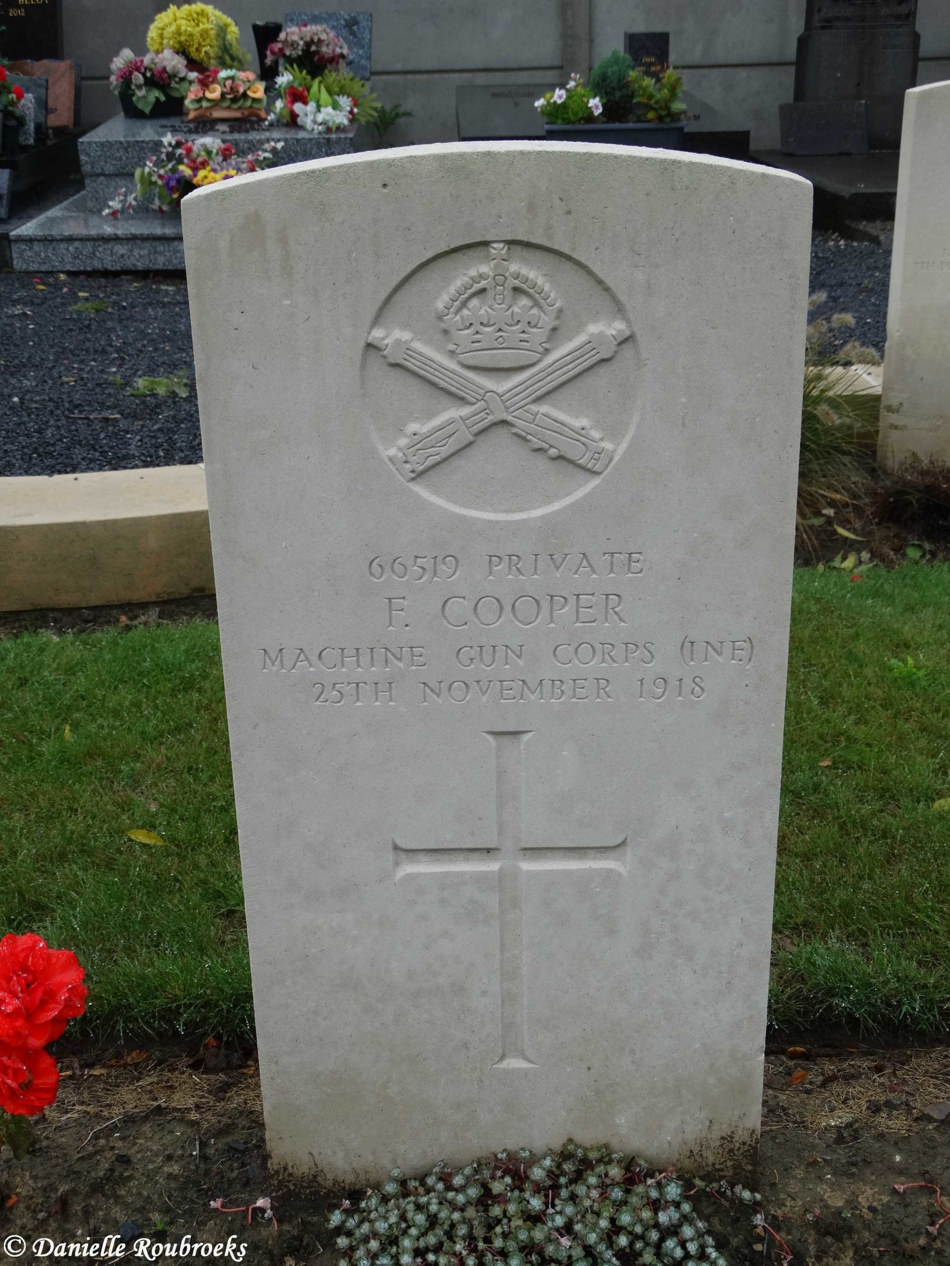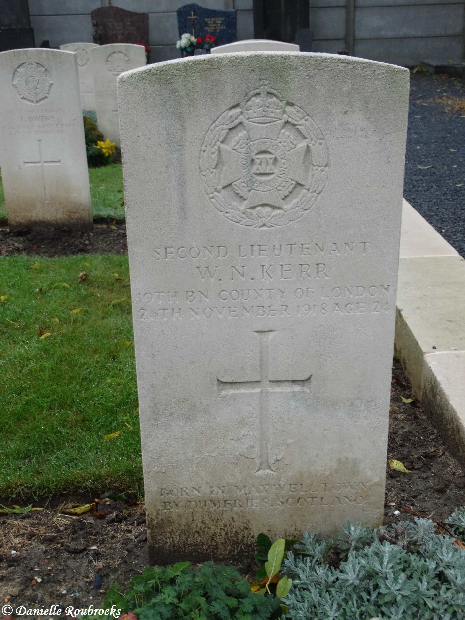 There are now over 50, 1914-18 and a small number of 1939-45 war casualties commemorated in this site. The British plot covers an area of 249 square metres and is enclosed by a low stone curb.The main Commonwealth War Graves plot is on the left near the entrance, and the second plot is 50 metres further along on the right.