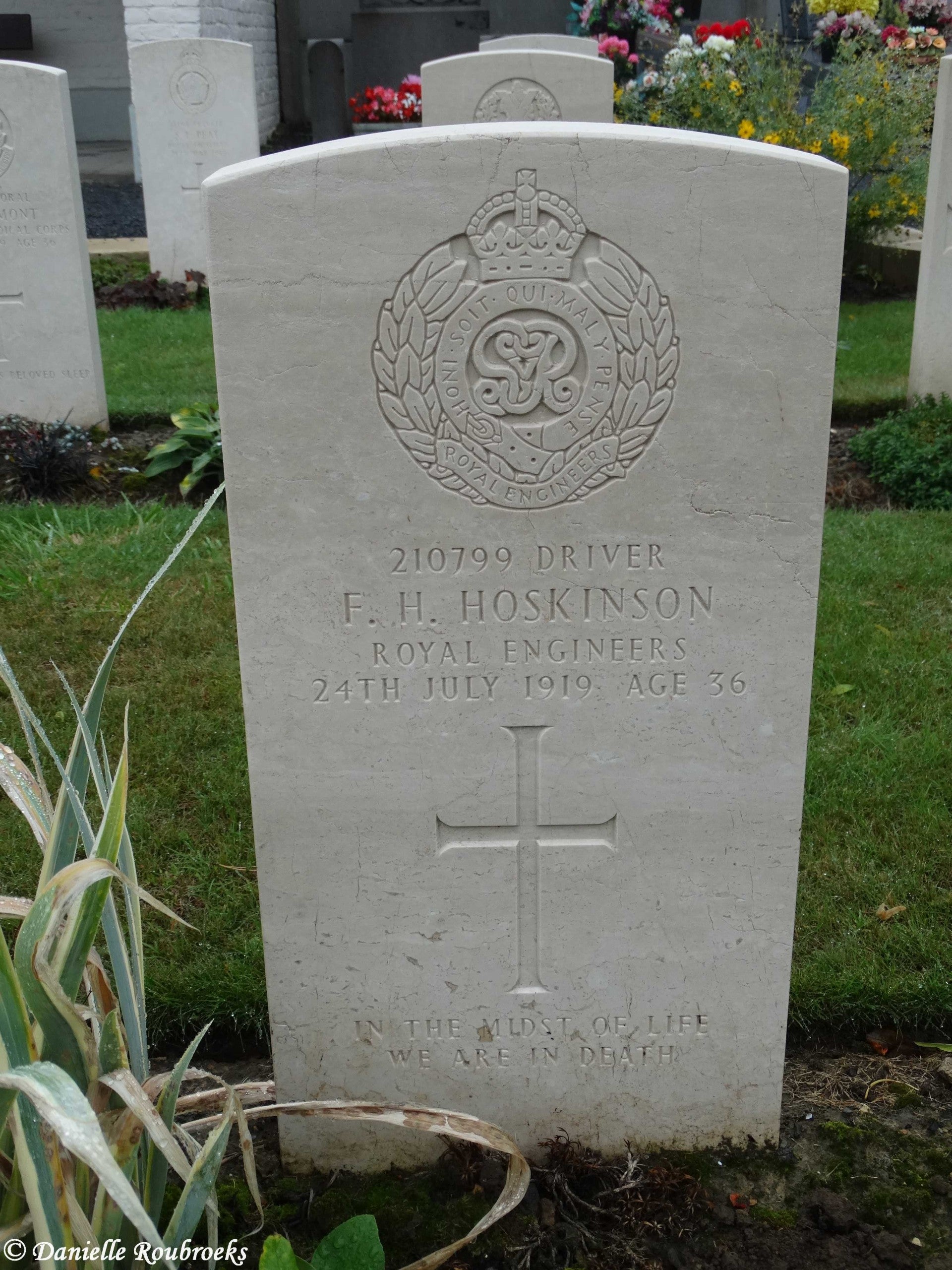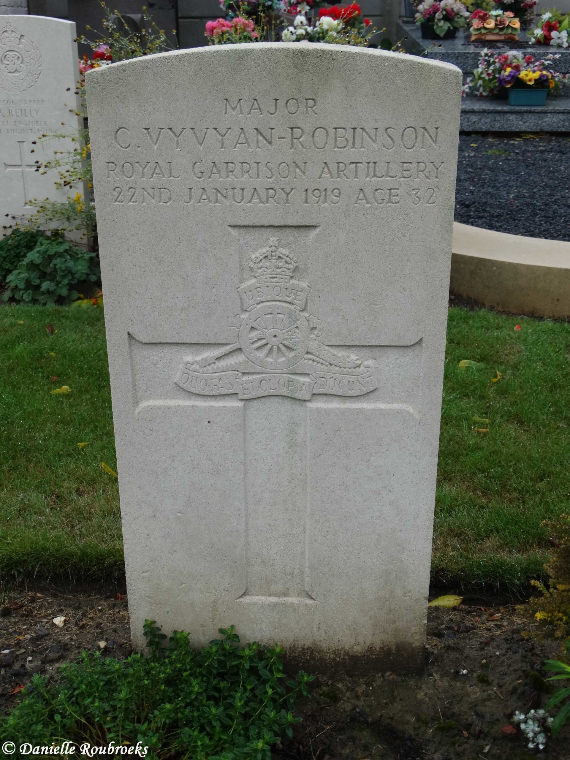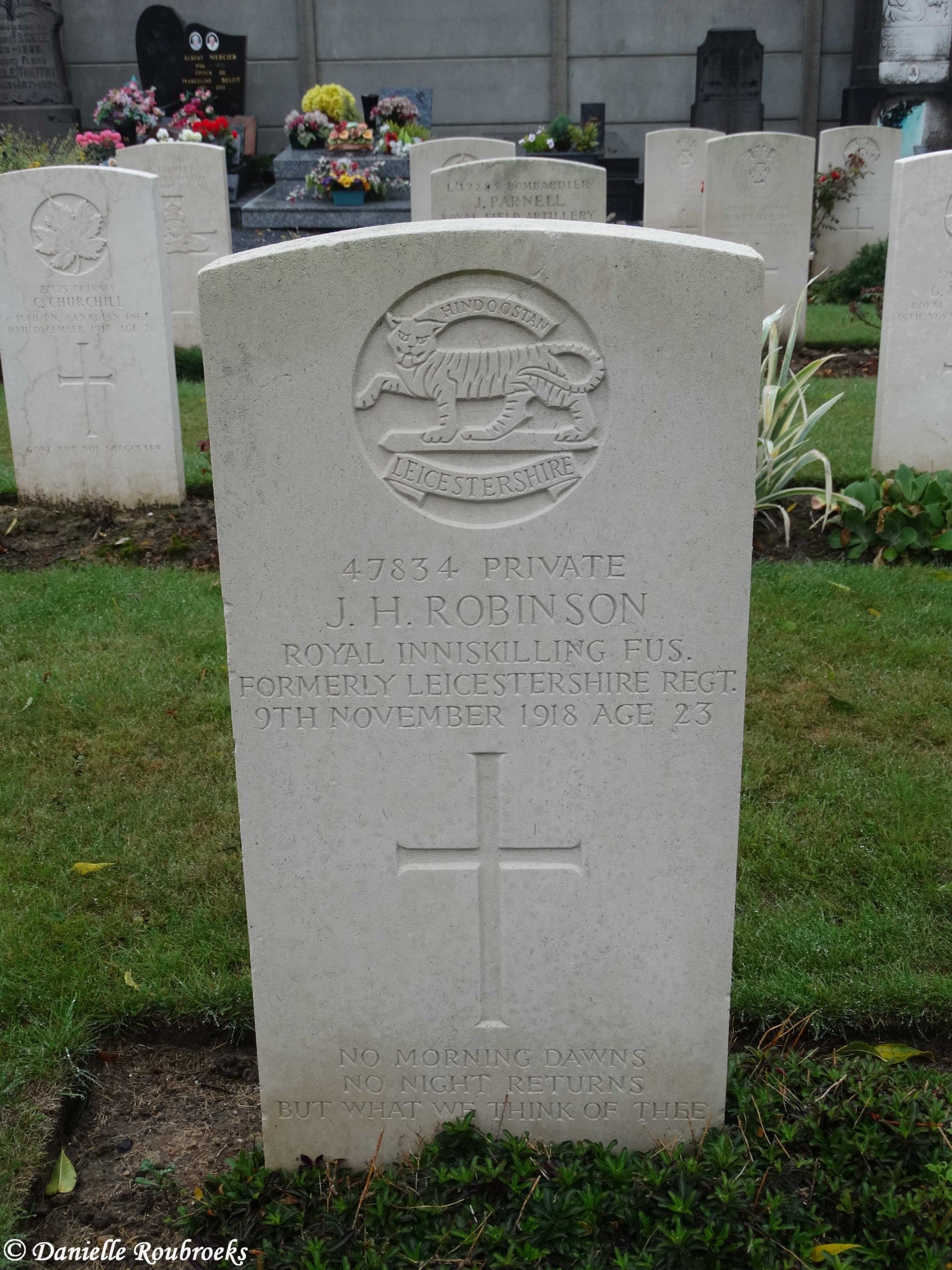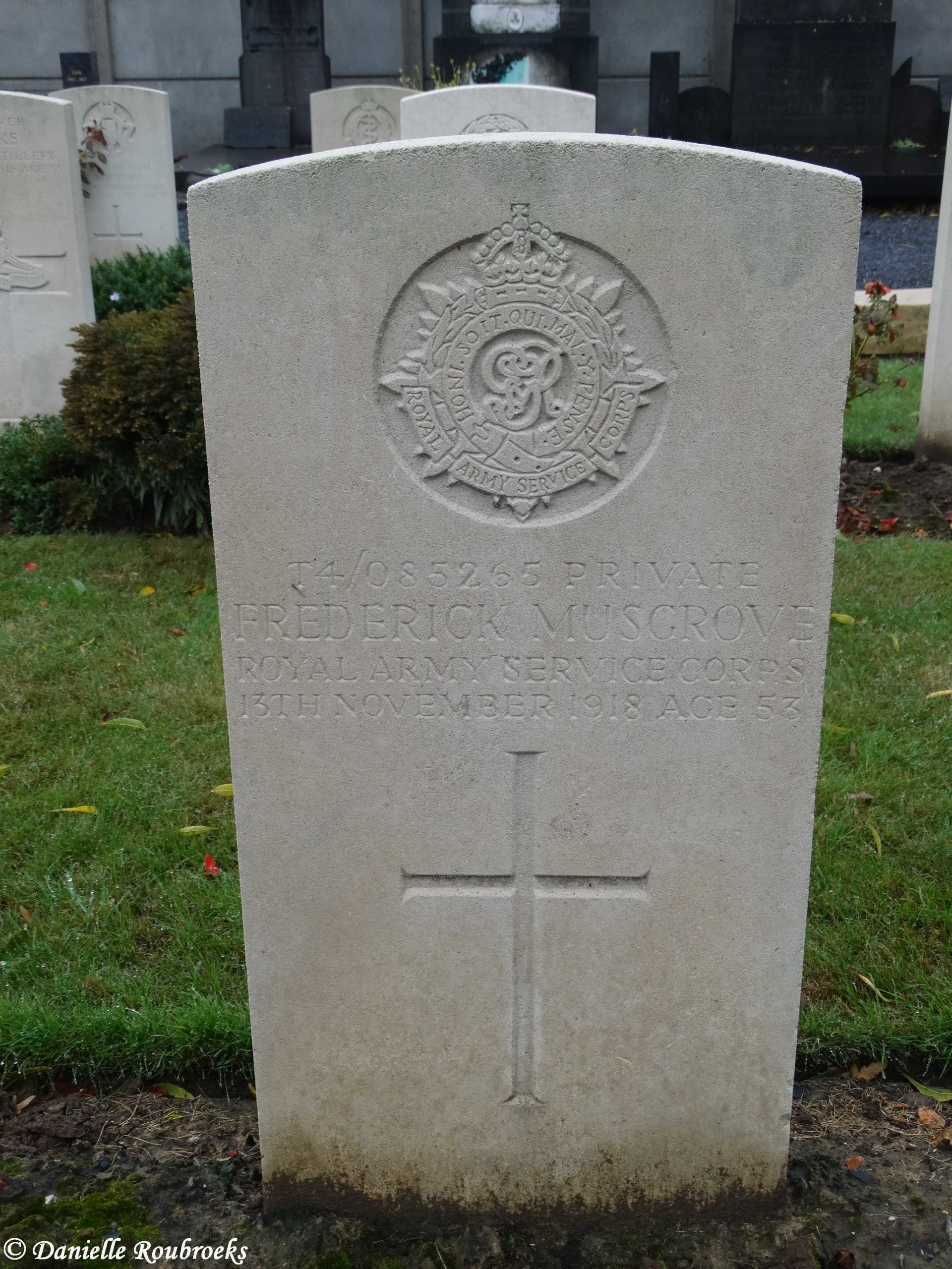 There are now over 50, 1914-18 and a small number of 1939-45 war casualties commemorated in this site. The British plot covers an area of 249 square metres and is enclosed by a low stone curb.The main Commonwealth War Graves plot is on the left near the entrance, and the second plot is 50 metres further along on the right.