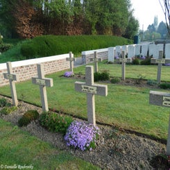 Crucifix Cemetery, Vendegies-sur-Ecaillon was captured by the 19th (Western) and 61st (South Midland) Divisions on 24 October 1918, after severe fighting. The cemetery, which stands behind a roadside crucifix, was made by the 61st Division after the battle.