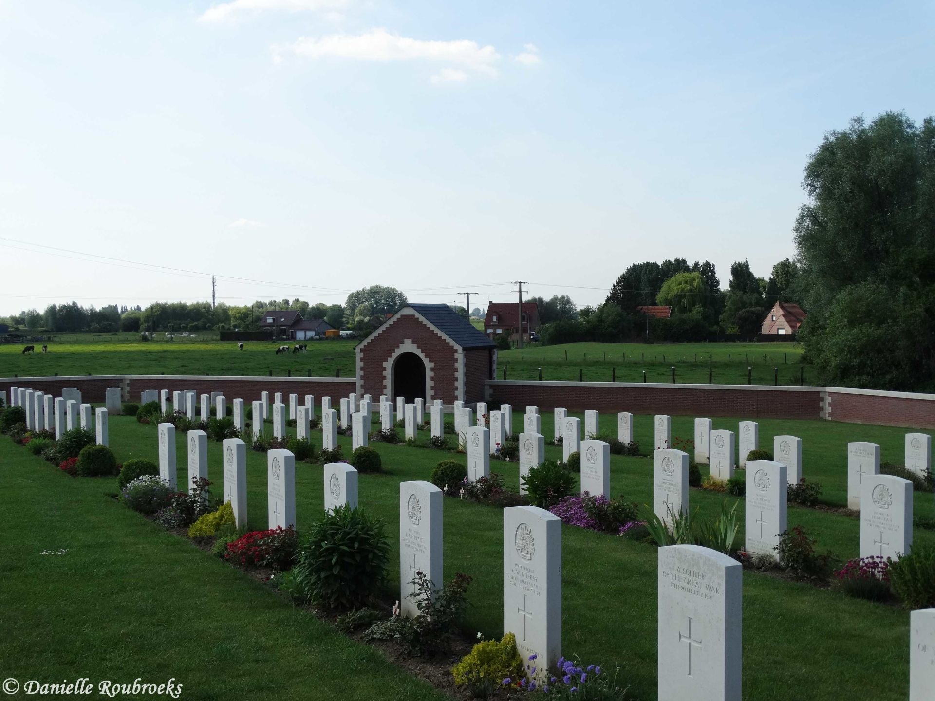 The cemetery contains a total of 250 Australian and British soldiers. 220 are Australians, of which 70 are unidentified, 2 are unidentified British soldiers and 28 are entirely unidentified Commonwealth soldiers. The 250 were recovered in 2009 from a number of mass graves located behind nearby Pheasant Wood, where they had been buried by the Germans following the disastrous battle of Fromelles on 19 and 20 July 1916. The cemetery was officially dedicated on 19 July 2010 and was designed by Barry Edwards.