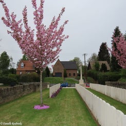Landrecies was the scene of rear-guard fighting on 25 August 1914, after the Battle of Mons, and from that date it remained in German hands until it was captured by the 25th Division on 4 November 1918. Landrecies British Cemetery was made by the 25th Division in November 1918 and all burials date from the period October 1918 to January 1919. Landrecies British Cemetery contains 165 Commonwealth burials of the First World War, 14 of which are unidentified.