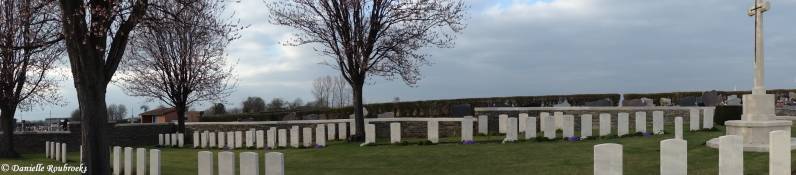 The village of Poix-du-Nord was captured in the latter part of October 1918. It was later "adopted" by the Borough of Keighley. The Extension was made after the capture of the village, and increased after the Armistice by the concentration of graves from the following cemetery:- Escarmain Communal Cemetery Extension. This was at the back of the Communal Cemetery and was begun by the Germans, but continued to be used by the 2nd Division Burial Officer after the capture of the village at the end of October 1918. It contained the graves of 20 German soldiers and 27 from the United Kingdom.